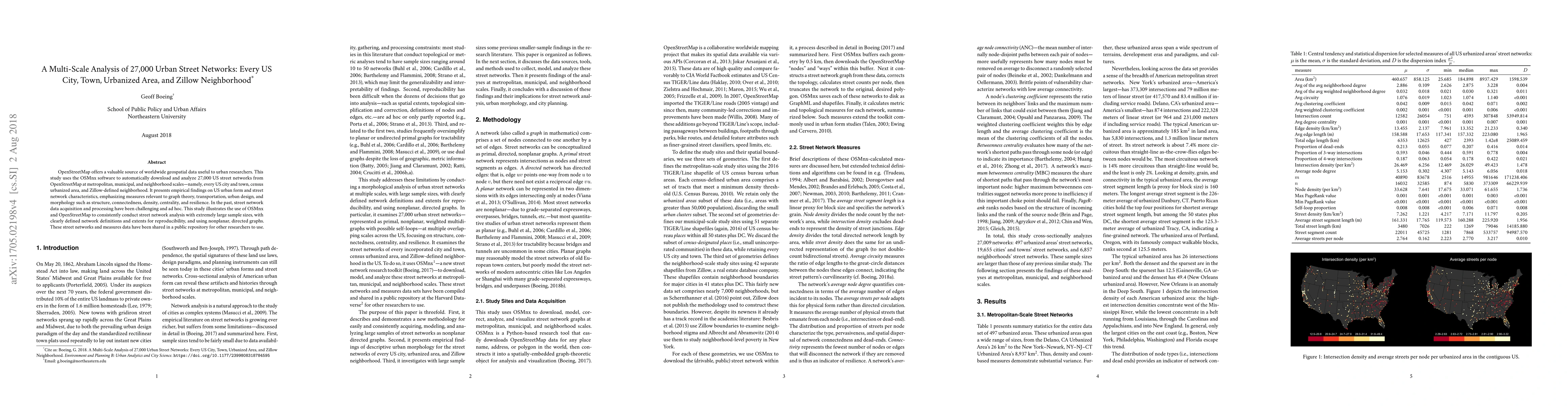 This study analyzed 27,000 US street networks using OpenStreetMap data to identify urban form patterns, network characteristics, and measures relevant to transportation, design, and morphology. The research provides a comprehensive dataset for future studies, making it easier to conduct large-scale urban analysis.