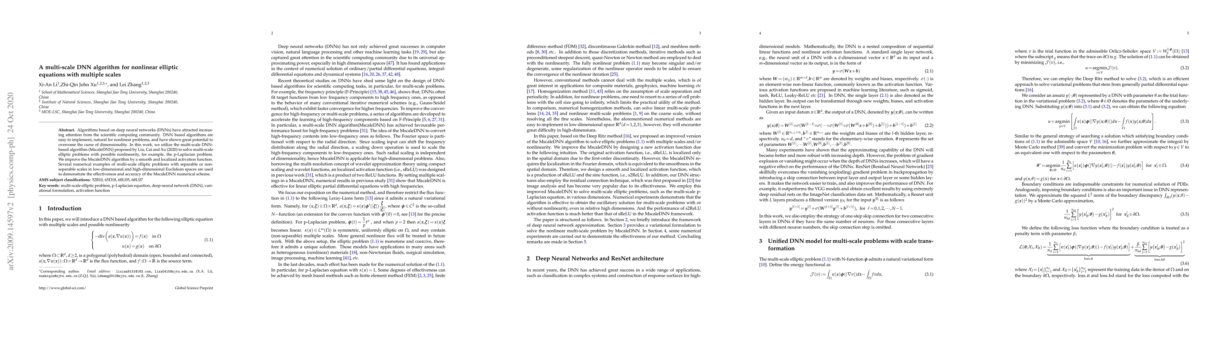 Algorithms based on deep neural networks (DNNs) have attracted increasing attention from the scientific computing community. DNN based algorithms are easy to implement, natural for nonlinear problems, and have shown great potential to overcome the curse of dimensionality. In this work, we utilize the multi-scale DNN-based algorithm (MscaleDNN) proposed by Liu, Cai and Xu (2020) to solve multi-scale elliptic problems with possible nonlinearity, for example, the p-Laplacian problem. We improve the MscaleDNN algorithm by a smooth and localized activation function. Several numerical examples of multi-scale elliptic problems with separable or non-separable scales in low-dimensional and high-dimensional Euclidean spaces are used to demonstrate the effectiveness and accuracy of the MscaleDNN numerical scheme.