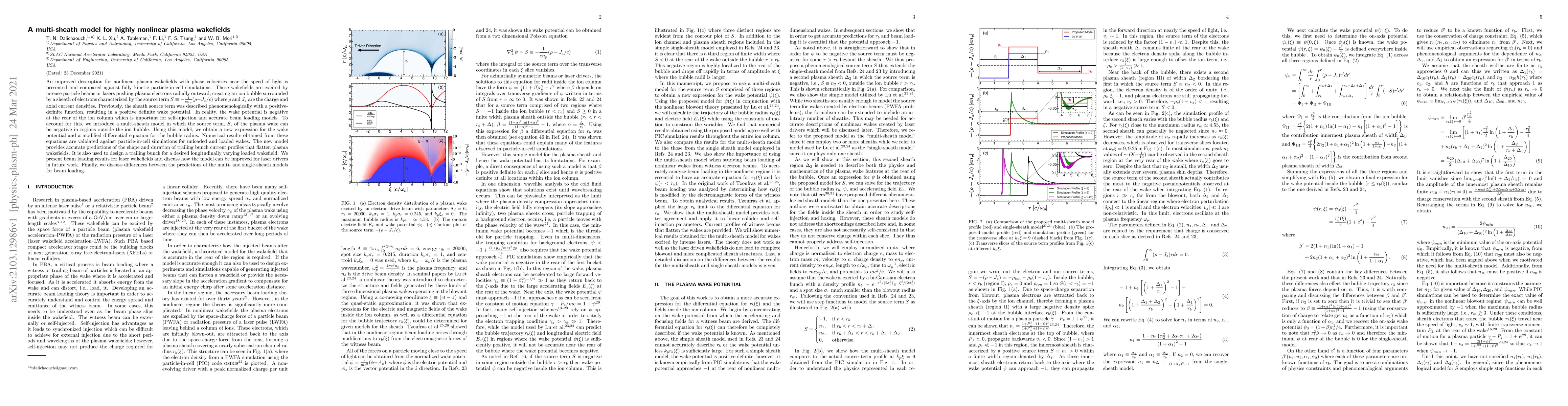 An improved description for nonlinear plasma wakefields with phase velocities near the speed of light is presented and compared against fully kinetic particle-in-cell simulations. These wakefields are excited by intense particle beams or lasers pushing plasma electrons radially outward, creating an ion bubble surrounded by a sheath of electrons characterized by the source term $S \equiv -\frac{1}{en_p}(\rho-J_z/c)$ where $\rho$ and $J_z$ are the charge and axial current densities. Previously, the sheath source term was described phenomenologically with a positive-definite function, resulting in a positive definite wake potential. In reality, the wake potential is negative at the rear of the ion column which is important for self-injection and accurate beam loading models. To account for this, we introduce a multi-sheath model in which the source term, $S$, of the plasma wake can be negative in regions outside the ion bubble. Using this model, we obtain a new expression for the wake potential and a modified differential equation for the bubble radius. Numerical results obtained from these equations are validated against particle-in-cell simulations for unloaded and loaded wakes. The new model provides accurate predictions of the shape and duration of trailing bunch current profiles that flatten plasma wakefields. It is also used to design a trailing bunch for a desired longitudinally varying loaded wakefield. We present beam loading results for laser wakefields and discuss how the model can be improved for laser drivers in future work. Finally, we discuss differences between the predictions of the multi- and single-sheath models for beam loading.