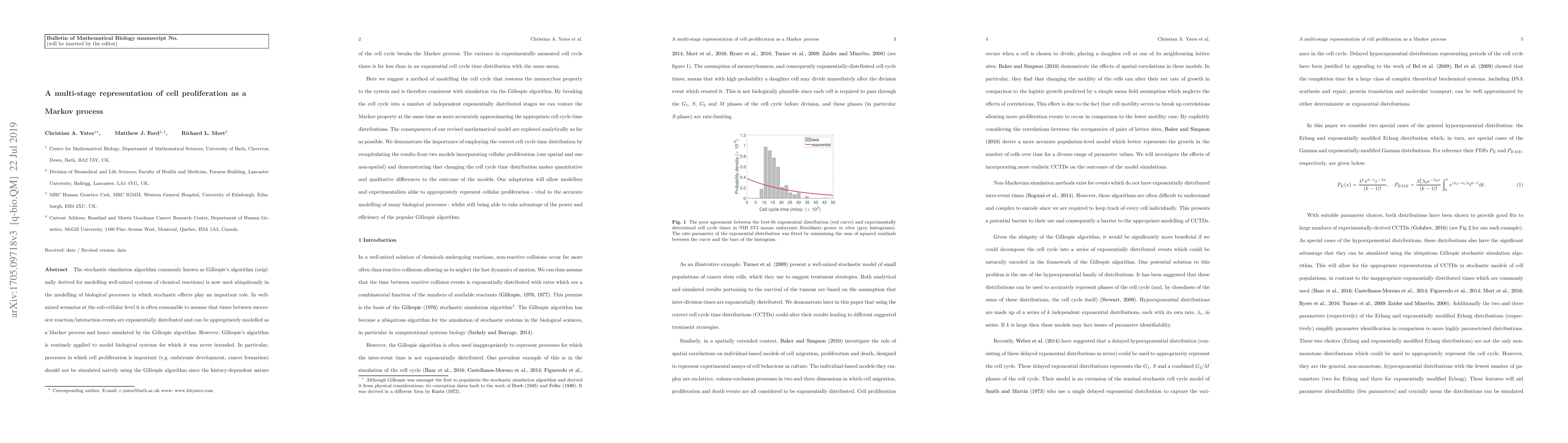 This paper proposes a multi-stage representation of cell proliferation that restores the Markov property, enabling accurate simulation using Gillespie's algorithm. By dividing the cell cycle into independent stages, the model more closely matches experimental cell cycle time distributions and highlights the impact of cell cycle distribution on proliferation models.
