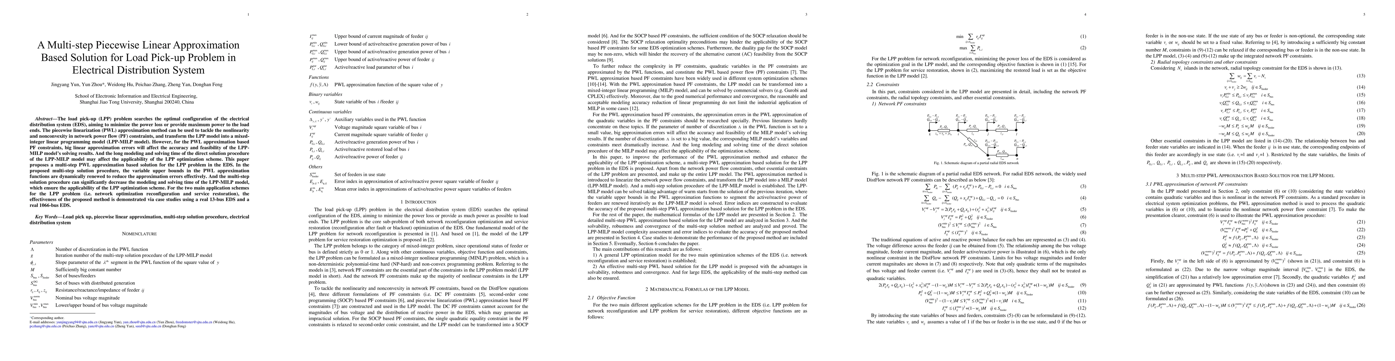 A new approach to solving the load pick-up problem in electrical distribution systems reduces approximation errors and shortens solution times through a multi-step piecewise linear approximation method.