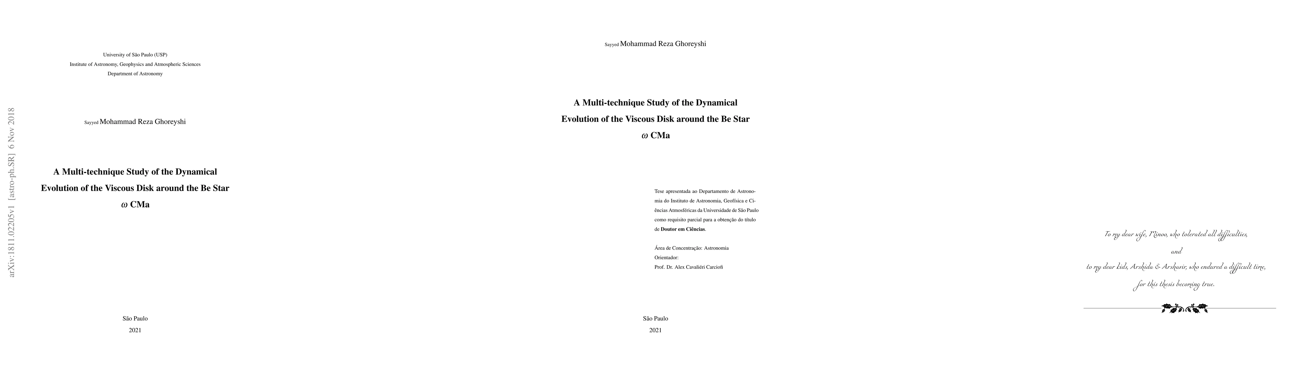 There is an increasing body of evidence that suggests that Be disks are well described by the Viscous Decretion Disk (VDD) model according to which the formation and structure of the disk depend on the kinematic viscosity of the gas. However, most observational tests of the VDD to-date were done for systems that do not display strong temporal variability. From this analysis we (1) obtain a realistic physical model of the circumstellar environment; (2) measure the viscosity parameter of the gas, both during the formation and dissipation phases of the disk; (3) obtain a reliable estimate of the stellar mass and angular momentum loss rates during outburst. Our simulations suggests that the VDD model adequately describes the structural evolution of the disk. Furthermore, our analysis allowed us to determine the viscosity parameter a, as well as the net mass and angular momentum (AM) loss rates. We find that a is variable, ranging from 0.1 to 1.0, not only from cycle to cycle but also within a given cycle. Additionally, build-up phases have larger values of a than the dissipation phases. We also find that, contrary to what is generally assumed, during dissipation the outward AM flux is not necessarily zero, meaning that {\omega} CMa does not experience a true quiescence but, instead, switches between a high AM loss rate state to a low AM loss rate one during which the disk quickly assumes an overall lower density but never zero. We confront the average AM loss rate with predictions from stellar evolution models for fast-rotating stars, and find that our measurements are smaller by more than one order of magnitude. The model developed using the V-band photometry as a constraint was applied to several other observables. Overall, the results of this multi-technique study were very positive, with a good match for multi-band photometry, polarization, and most spectroscopic characteristics.