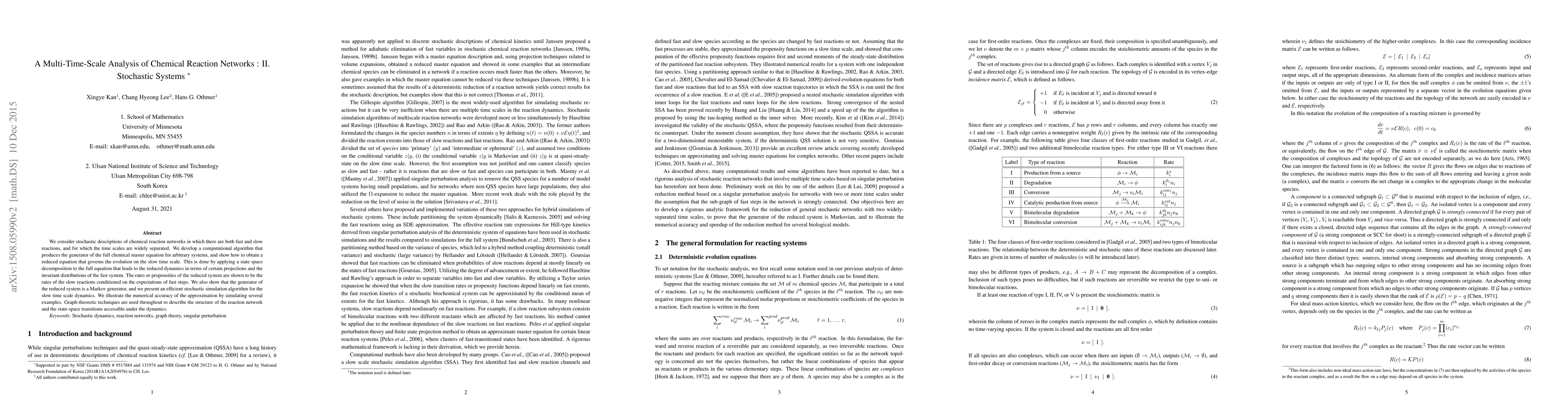This paper develops a computational algorithm to analyze chemical reaction networks with both fast and slow reactions, providing a reduced equation that governs the evolution on the slow time scale and demonstrating its numerical accuracy through simulation.