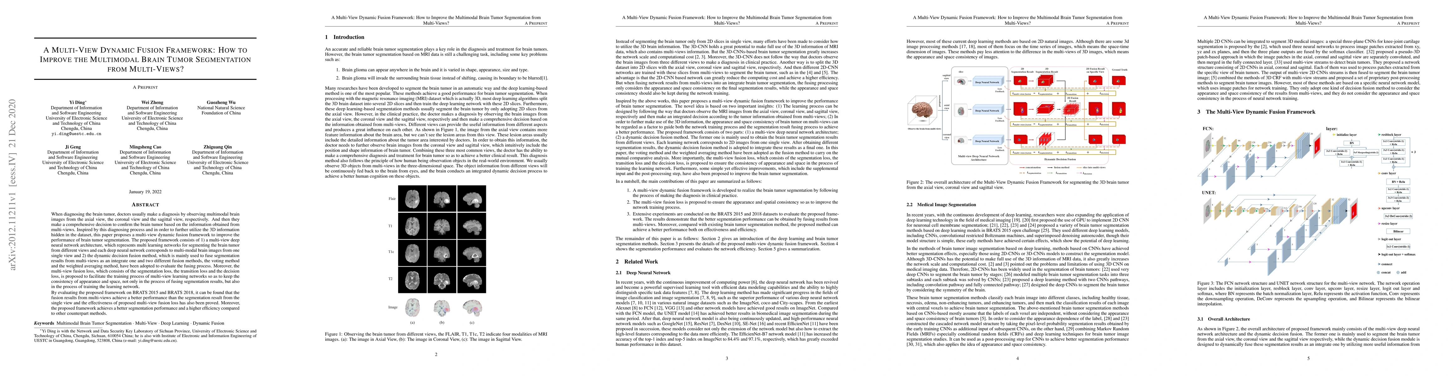 This paper proposes a multi-view dynamic fusion framework to enhance brain tumor segmentation by utilizing axial, coronal, and sagittal views. It integrates multi-view deep neural networks and dynamic fusion methods, demonstrating improved performance and efficiency over single-view segmentation approaches.
