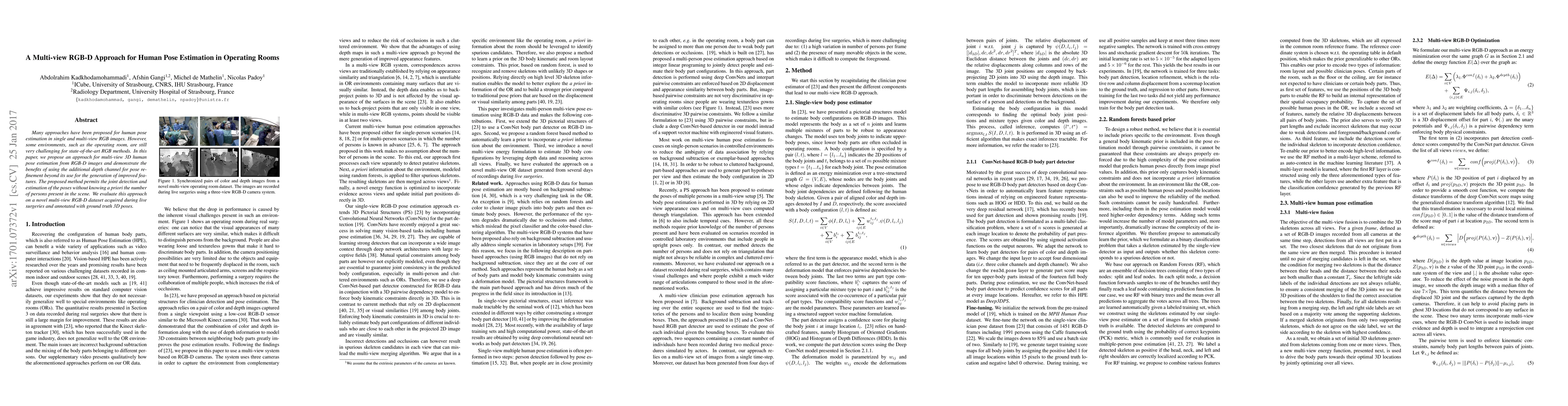 This paper presents a multi-view RGB-D approach for human pose estimation in operating rooms, leveraging depth data for pose refinement and enabling joint detection without prior knowledge of the number of individuals. The method is evaluated on a new multi-view RGB-D dataset with live surgical annotations.