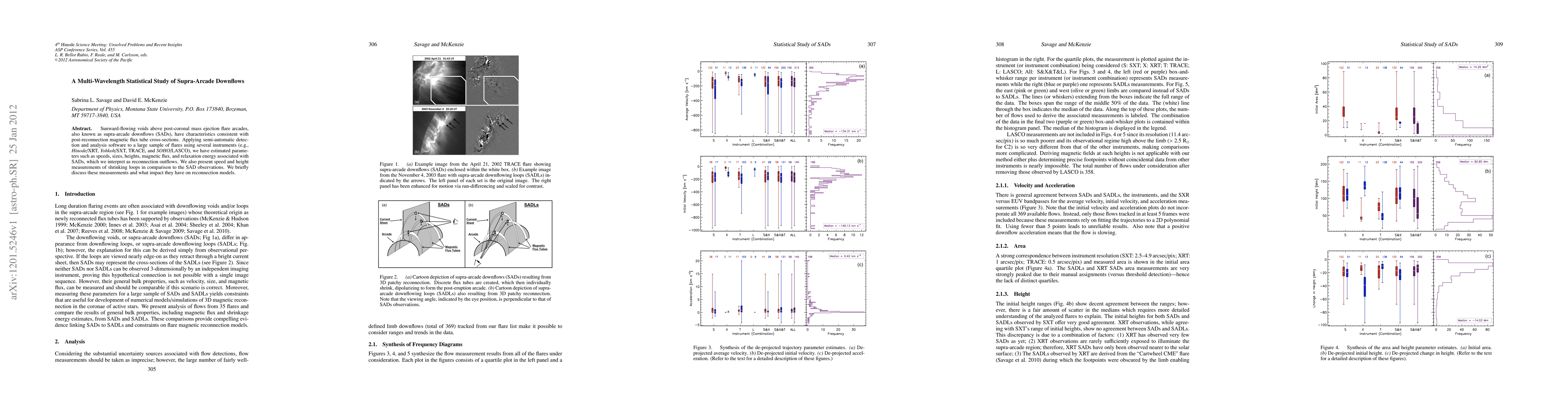 Sunward-flowing voids above post-coronal mass ejection flare arcades, also known as supra-arcade downflows (SADs), have characteristics consistent with post-reconnection magnetic flux tube cross-sections. Applying semi-automatic detection and analysis software to a large sample of flares using several instruments (e.g., Hinode/XRT, Yohkoh/SXT, TRACE, and SOHO/LASCO), we have estimated parameters such as speeds, sizes, heights, magnetic flux, and relaxation energy associated with SADs, which we interpret as reconnection outflows. We also present speed and height measurements of shrinking loops in comparison to the SAD observations. We briefly discuss these measurements and what impact they have on reconnection models.