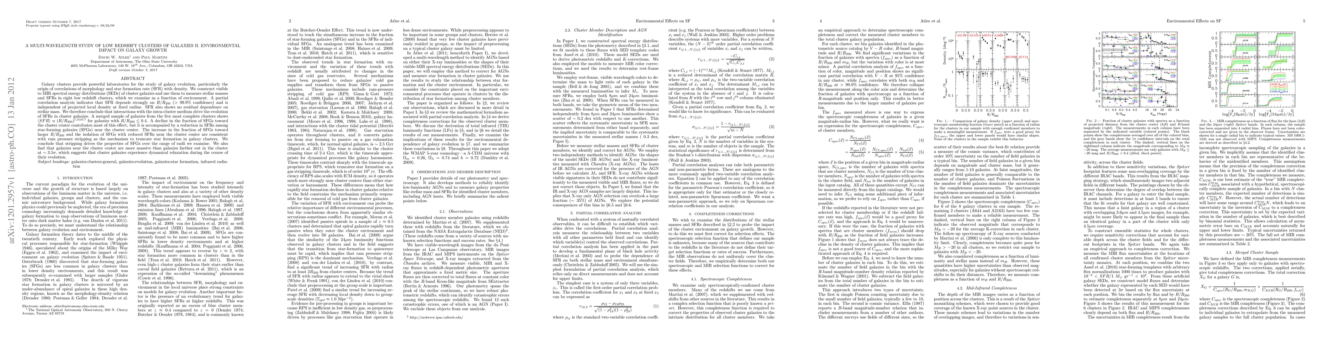 and SFRs in eight low redshift clusters, which we examine as a function of