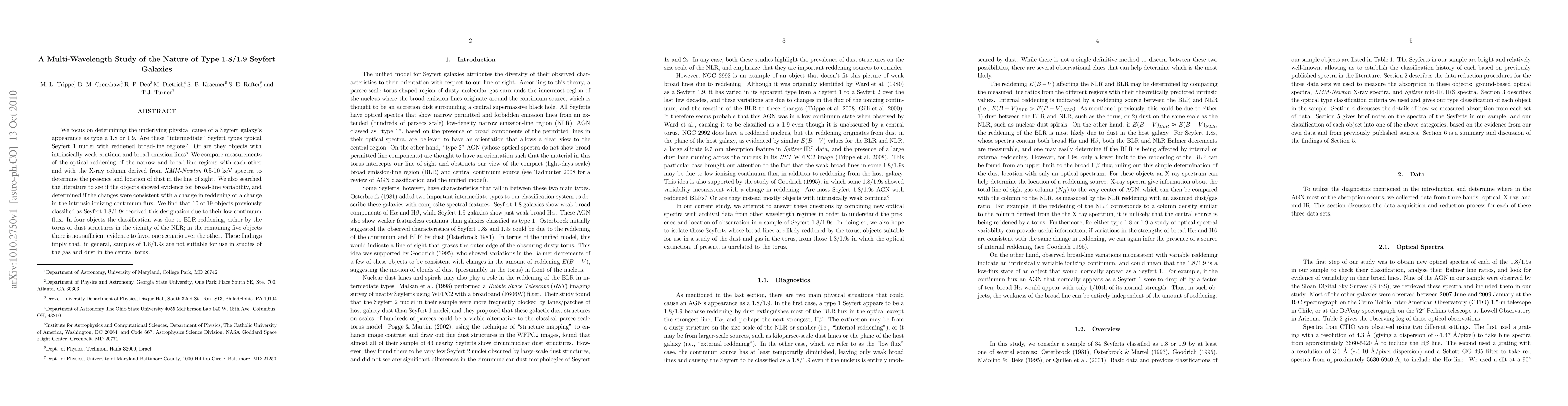 We focus on determining the underlying physical cause of a Seyfert galaxy's appearance as type a 1.8 or 1.9. Are these "intermediate" Seyfert types typical Seyfert 1 nuclei with reddened broad-line regions? Or are they objects with intrinsically weak continua and broad emission lines? We compare measurements of the optical reddening of the narrow and broad-line regions with each other and with the X-ray column derived from XMM-Newton 0.5-10 keV spectra to determine the presence and location of dust in the line of sight. We also searched the literature to see if the objects showed evidence for broad-line variability, and determined if the changes were consistent with a change in reddening or a change in the intrinsic ionizing continuum flux. We find that 10 of 19 objects previously classified as Seyfert 1.8/1.9s received this designation due to their low continuum flux. In four objects the classification was due to BLR reddening, either by the torus or dust structures in the vicinity of the NLR; in the remaining five objects there is not sufficient evidence to favor one scenario over the other. These findings imply that, in general, samples of 1.8/1.9s are not suitable for use in studies of the gas and dust in the central torus.