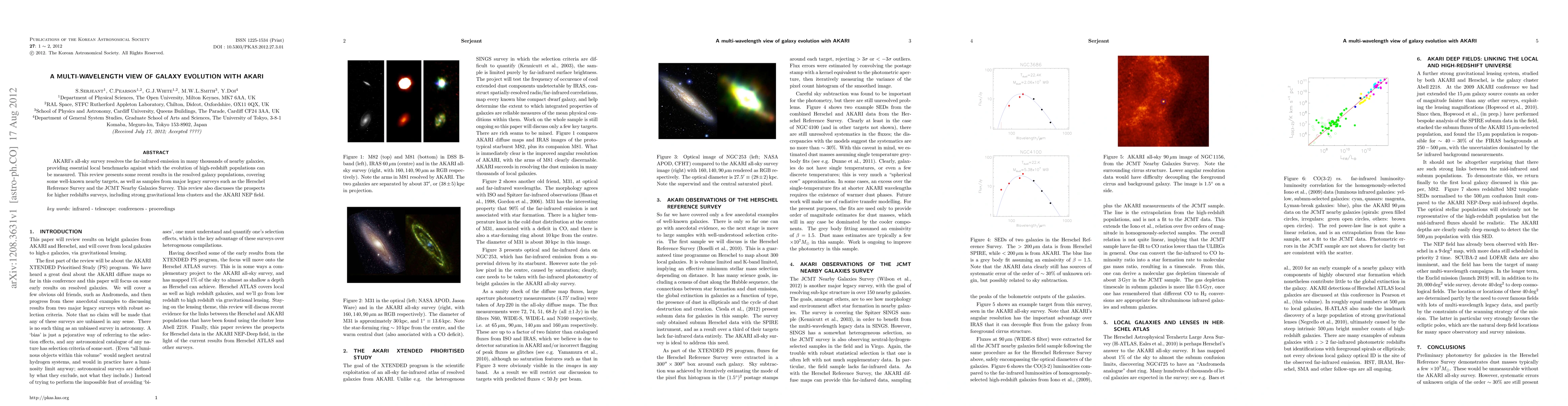 This paper reviews AKARI's multi-wavelength observations of nearby galaxies, using far-infrared data to benchmark galaxy evolution and compare it with high-redshift populations. It highlights findings from major surveys and discusses future prospects for higher redshift surveys.