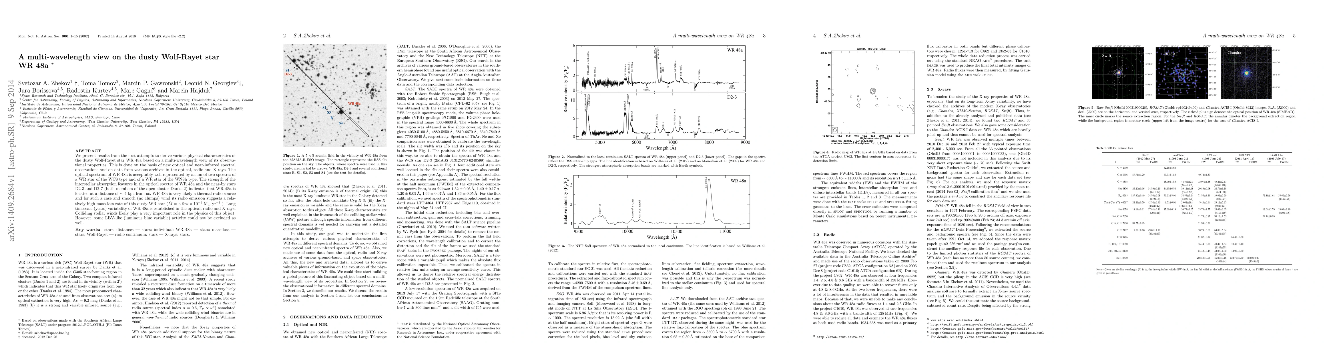 This paper investigates the dusty Wolf-Rayet star WR 48a using multi-wavelength observations, revealing it to be a blend of WC8 and WN8h types. The star exhibits significant interstellar absorption and high mass-loss rate, suggesting it is located ~4 kpc away and likely a thermal radio source.