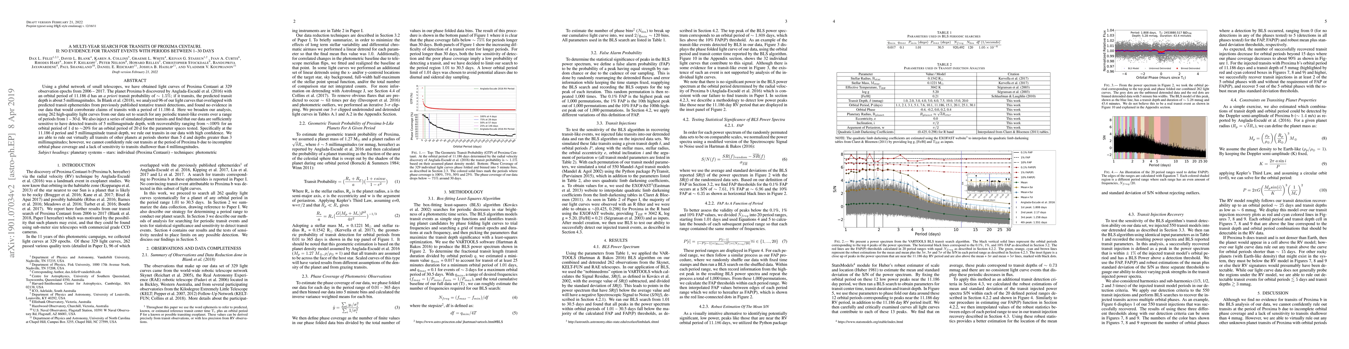 Using a global network of small telescopes, we have obtained light curves of Proxima Centauri at 329 observation epochs from 2006 - 2017. The planet Proxima b discovered by Anglada-Escude et al. (2016) with an orbital period of 11.186 d has an a priori transit probability of ~1.5%; if it transits, the predicted transit depth is about 5 millimagnitudes. In Blank et al. (2018), we analyzed 96 of our light curves that overlapped with predicted transit ephemerides from previously published tentative transit detections, and found no evidence in our data that would corroborate claims of transits with a period of 11.186 d. Here we broaden our analysis, using 262 high-quality light curves from our data set to search for any periodic transit-like events over a range of periods from 1 - 30 d. We also inject a series of simulated planet transits and find that our data are sufficiently sensitive to have detected transits of 5 millimagnitude depth, with recoverability ranging from ~100% for an orbital period of 1 d to ~20% for an orbital period of 20 d for the parameter spaces tested. Specifically at the 11.186 d period and 5 millimagnitude transit depth, we rule out transits in our data with high confidence. We are able to rule out virtually all transits of other planets at periods shorter than 5 d and depths greater than 3 millimagnitudes; however, we cannot confidently rule out transits at the period of Proxima b due to incomplete orbital phase coverage and a lack of sensitivity to transits shallower than 4 millimagnitudes.