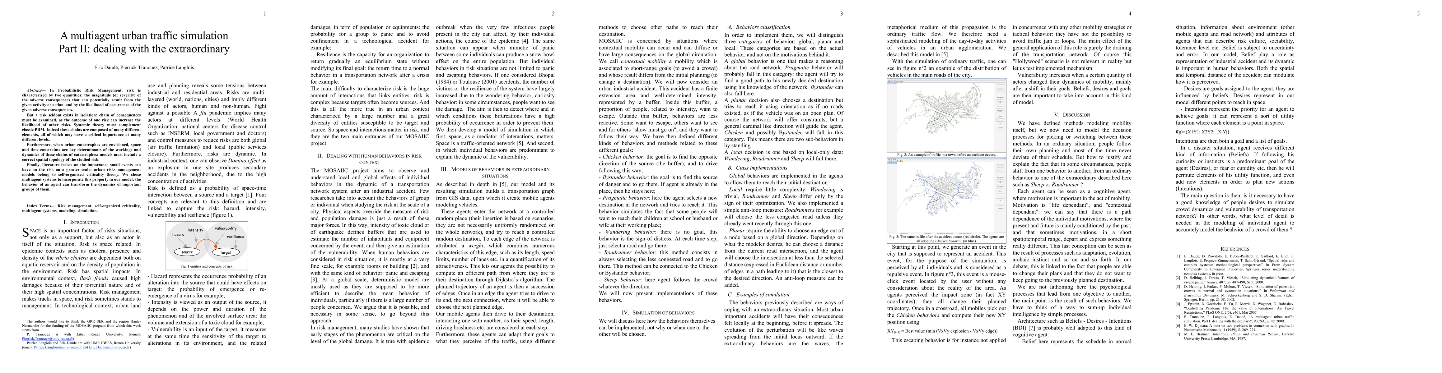 In Probabilistic Risk Management, risk is characterized by two quantities: the magnitude (or severity) of the adverse consequences that can potentially result from the given activity or action, and by the likelihood of occurrence of the given adverse consequences. But a risk seldom exists in isolation: chain of consequences must be examined, as the outcome of one risk can increase the likelihood of other risks. Systemic theory must complement classic PRM. Indeed these chains are composed of many different elements, all of which may have a critical importance at many different levels. Furthermore, when urban catastrophes are envisioned, space and time constraints are key determinants of the workings and dynamics of these chains of catastrophes: models must include a correct spatial topology of the studied risk. Finally, literature insists on the importance small events can have on the risk on a greater scale: urban risks management models belong to self-organized criticality theory. We chose multiagent systems to incorporate this property in our model: the behavior of an agent can transform the dynamics of important groups of them.