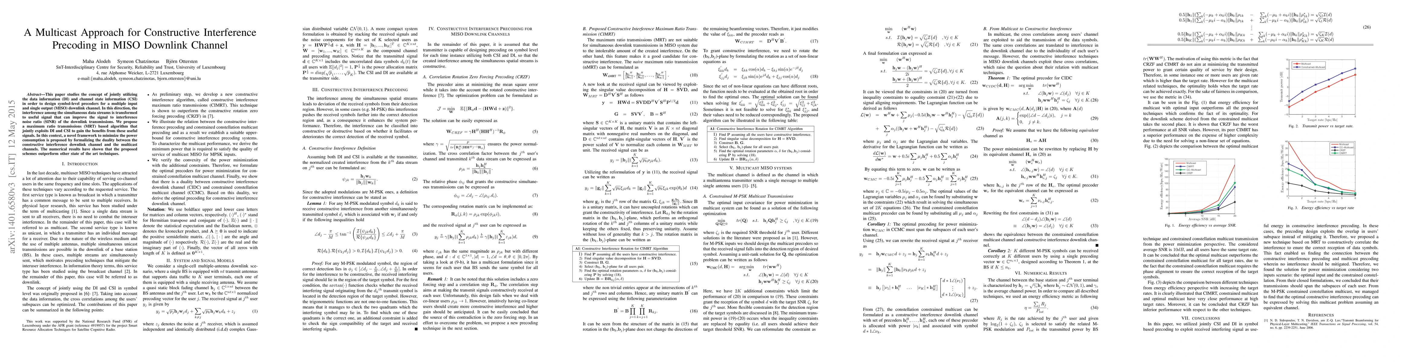 This paper proposes a multicast approach for constructive interference precoding in MISO downlink channels, utilizing both data information and channel state information to design symbol-level precoders. The proposed maximum ratio transmission algorithm enhances signal-to-interference-noise ratio and minimizes power consumption, outperforming other techniques according to numerical results.