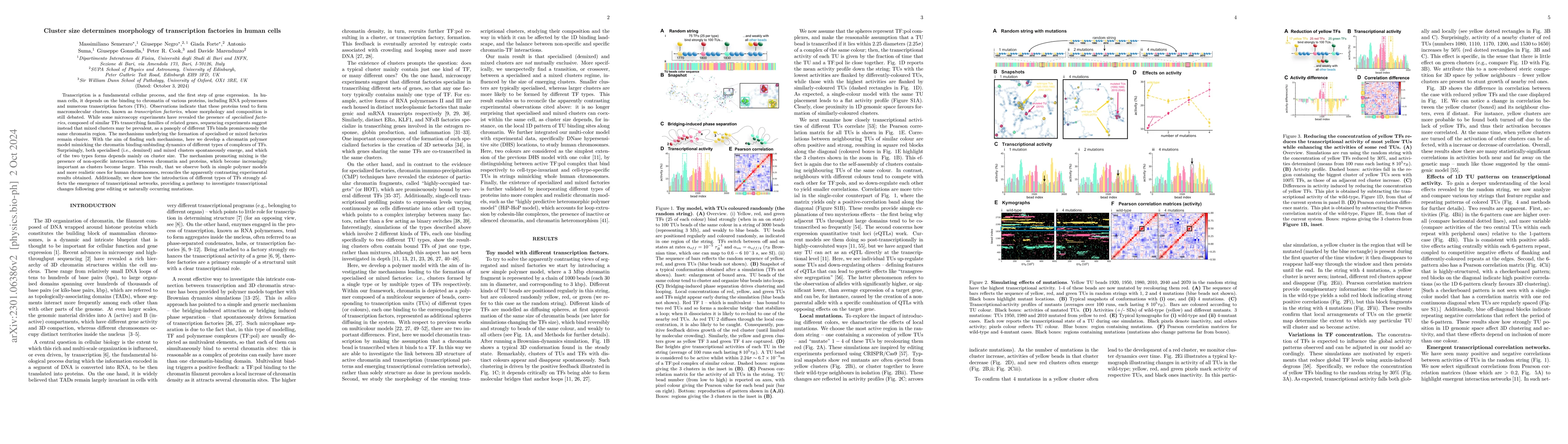 This research develops a multicolour polymer model to simulate human chromatin, showing how different chromatin-binding proteins can form segregated or mixed clusters, influencing 3D chromosome structure and transcription. The model explains co-transcription and regulatory effects of eQTLs, and predicts transcription unit activities across human chromosomes.