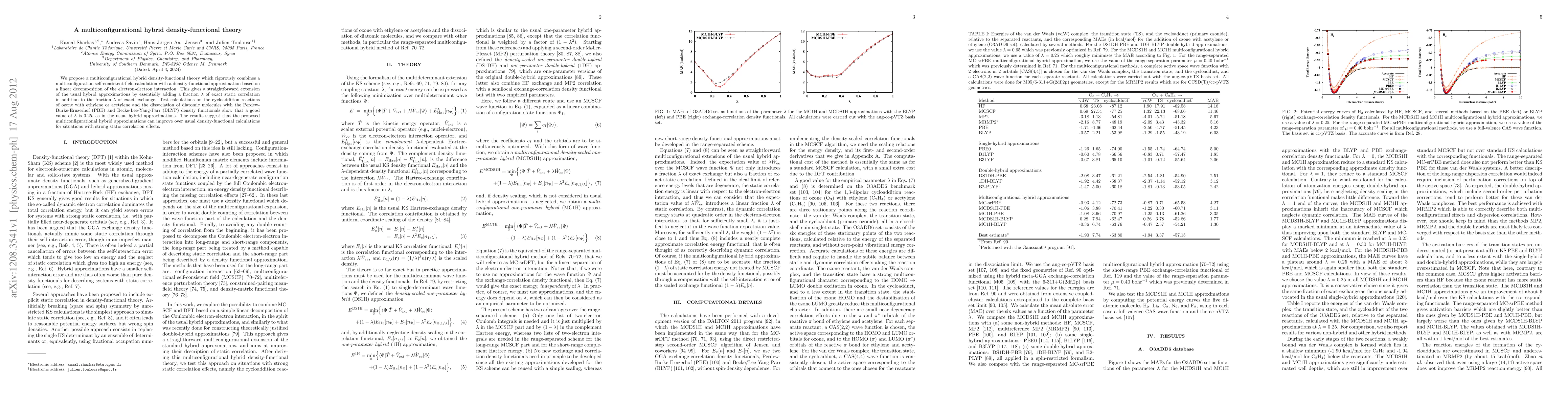 A multiconfigurational hybrid density-functional theory is proposed, combining a multiconfiguration self-consistent-field calculation with a density-functional approximation based on a linear decomposition of the electron-electron interaction.
