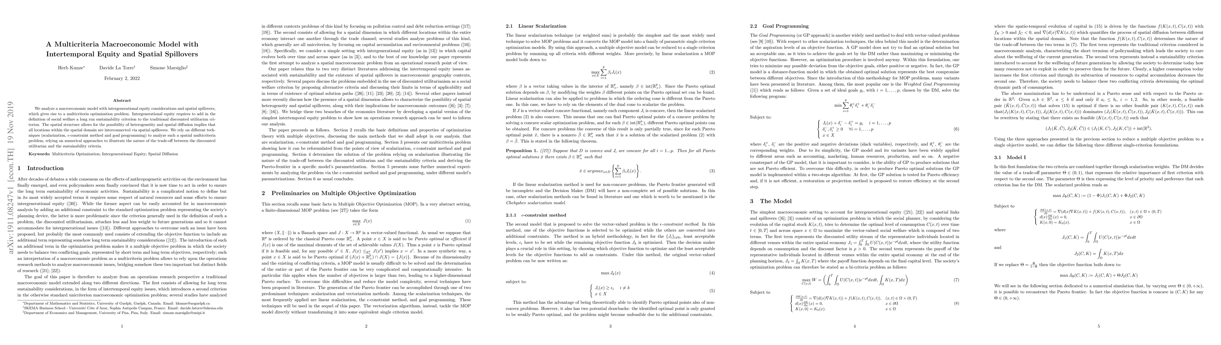 This research paper develops a macroeconomic model that incorporates intergenerational equity and spatial spillovers, requiring a multicriteria optimization approach to balance short-term gains with long-term sustainability.