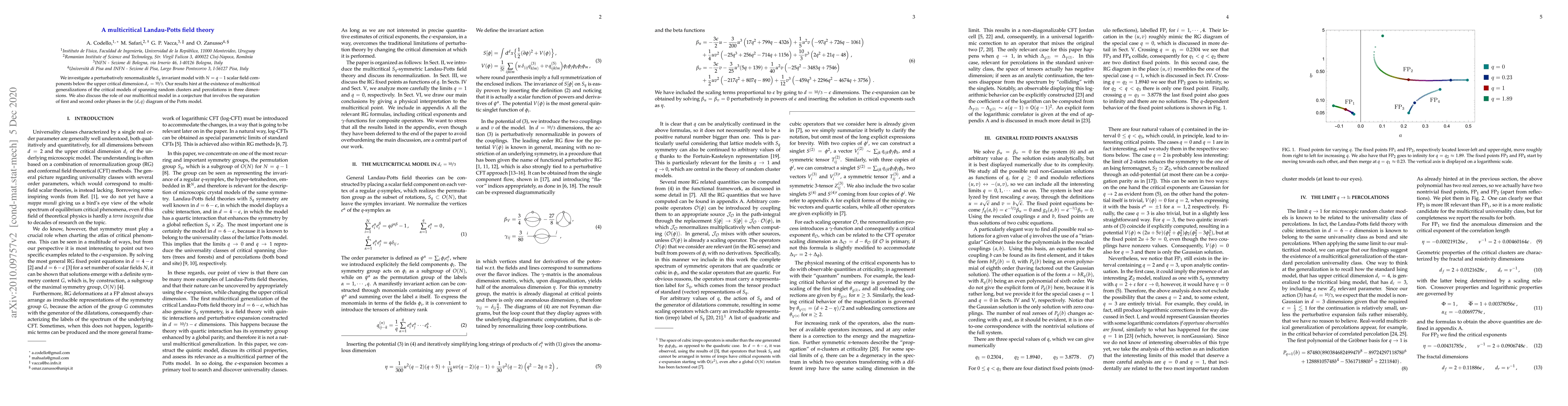 We investigate a perturbatively renormalizable $S_{q}$ invariant model with $N=q-1$ scalar field components below the upper critical dimension $d_c=\frac{10}{3}$. Our results hint at the existence of multicritical generalizations of the critical models of spanning random clusters and percolations in three dimensions. We also discuss the role of our multicritical model in a conjecture that involves the separation of first and second order phases in the $(d,q)$ diagram of the Potts model.