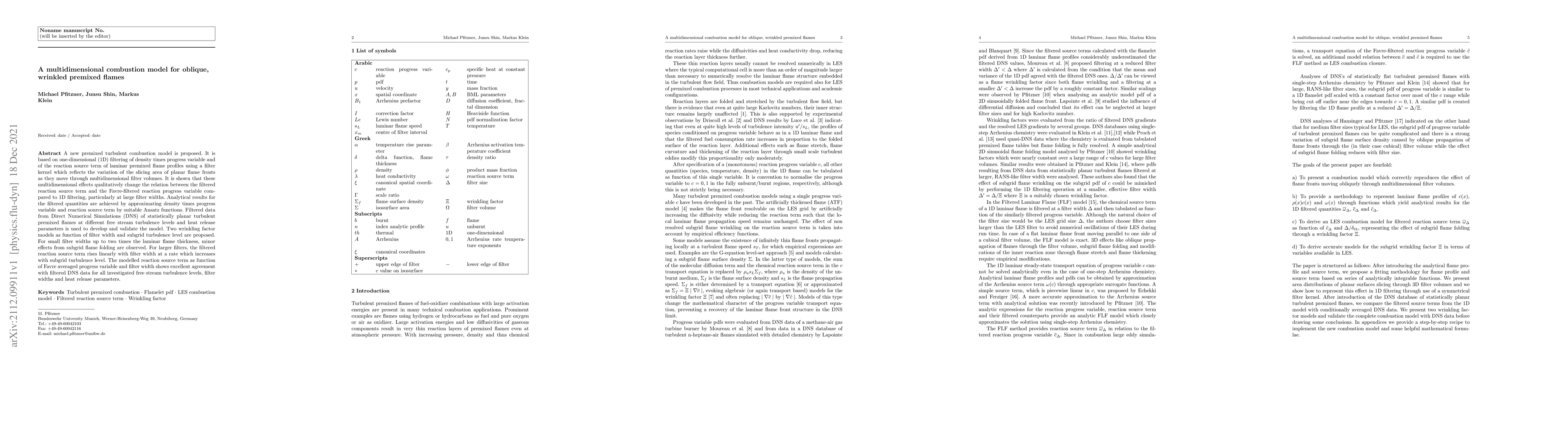 This paper proposes a new premixed turbulent combustion model based on multidimensional filtering of flame profiles, showing significant changes in the relation between reaction source term and progress variable compared to 1D filtering. The model is validated against DNS data, demonstrating excellent agreement for various turbulence levels and heat release parameters.