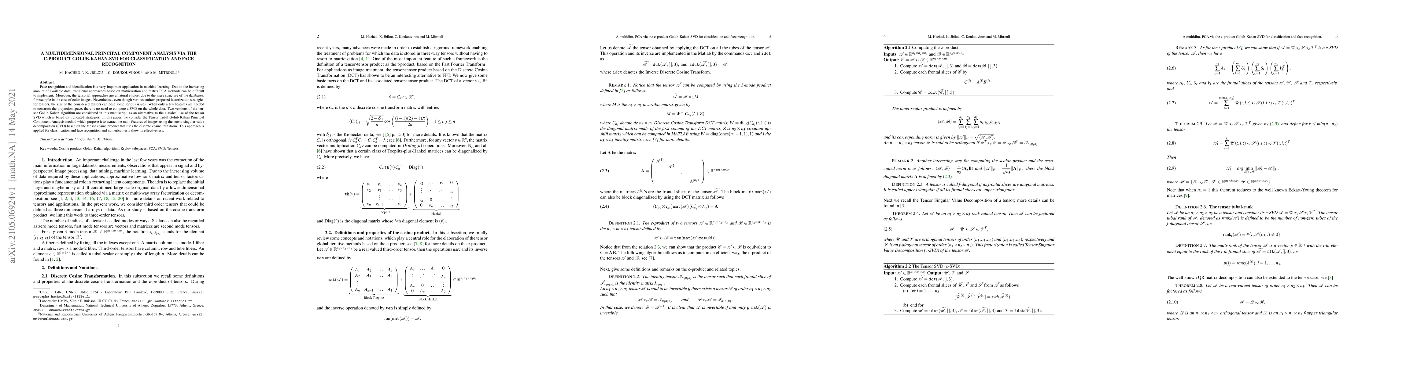 Face recognition and identification is a very important application in machine learning. Due to the increasing amount of available data, traditional approaches based on matricization and matrix PCA methods can be difficult to implement. Moreover, the tensorial approaches are a natural choice, due to the mere structure of the databases, for example in the case of color images. Nevertheless, even though various authors proposed factorization strategies for tensors, the size of the considered tensors can pose some serious issues. When only a few features are needed to construct the projection space, there is no need to compute a SVD on the whole data. Two versions of the tensor Golub-Kahan algorithm are considered in this manuscript, as an alternative to the classical use of the tensor SVD which is based on truncated strategies. In this paper, we consider the Tensor Tubal Golub Kahan Principal Component Analysis method which purpose is to extract the main features of images using the tensor singular value decomposition (SVD) based on the tensor cosine product that uses the discrete cosine transform. This approach is applied for classification and face recognition and numerical tests show its effectiveness.
