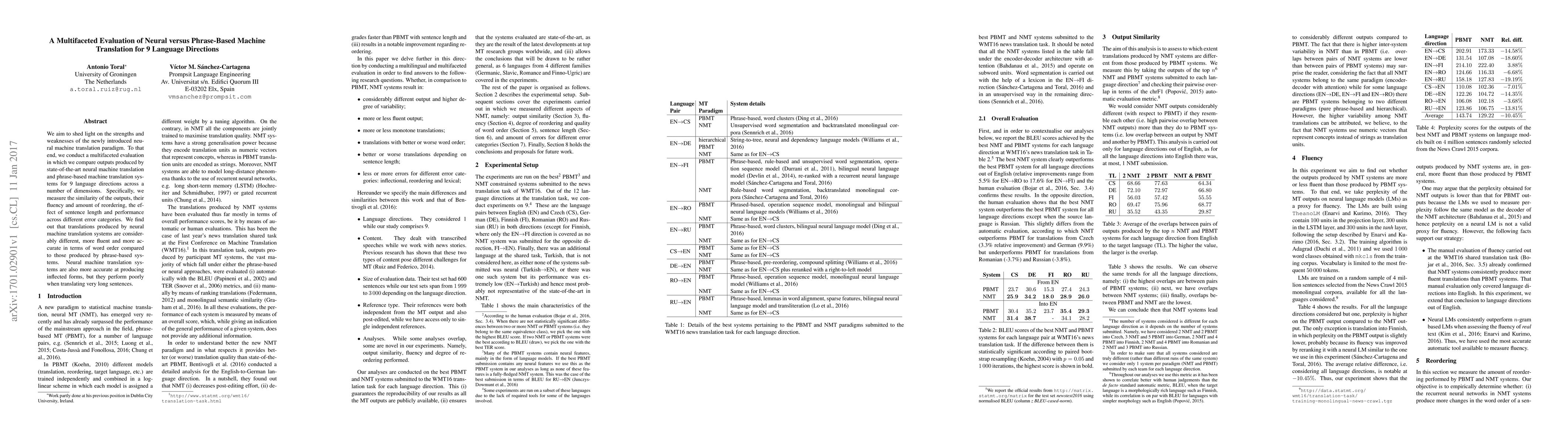 The paper presents a comprehensive evaluation framework comparing NMT and PBMT systems, contributing to the understanding of their relative strengths and weaknesses.