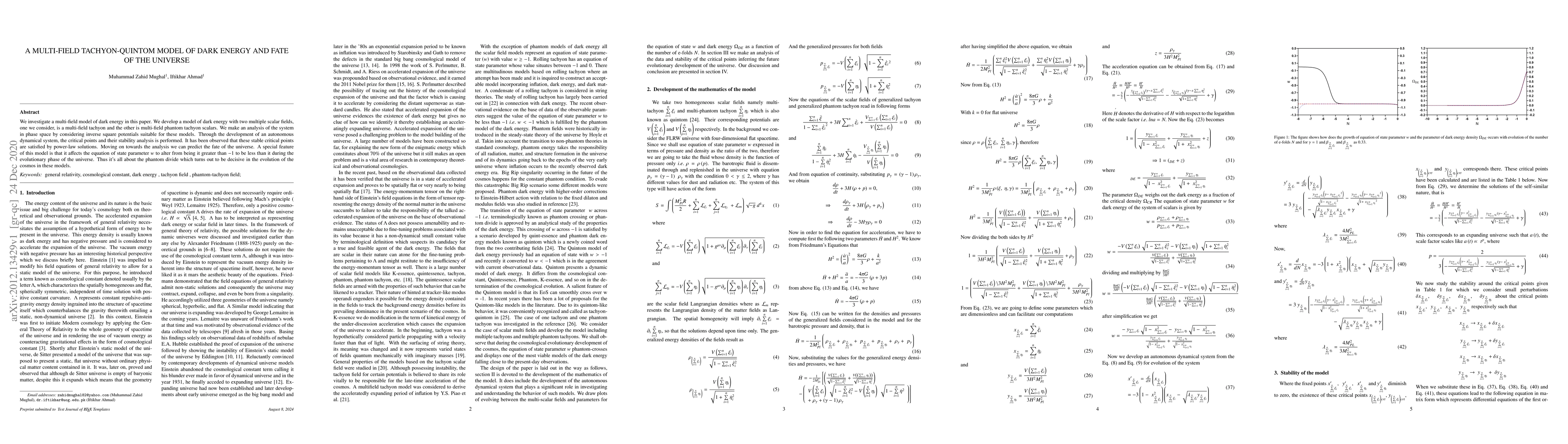 This paper explores a multi-field dark energy model with two scalar fields—a multifield tachyon and a multi-field phantom tachyon—and analyzes their phase space dynamics. The model predicts a shift in the equation of state parameter, influencing the universe's fate by crossing the phantom divide.