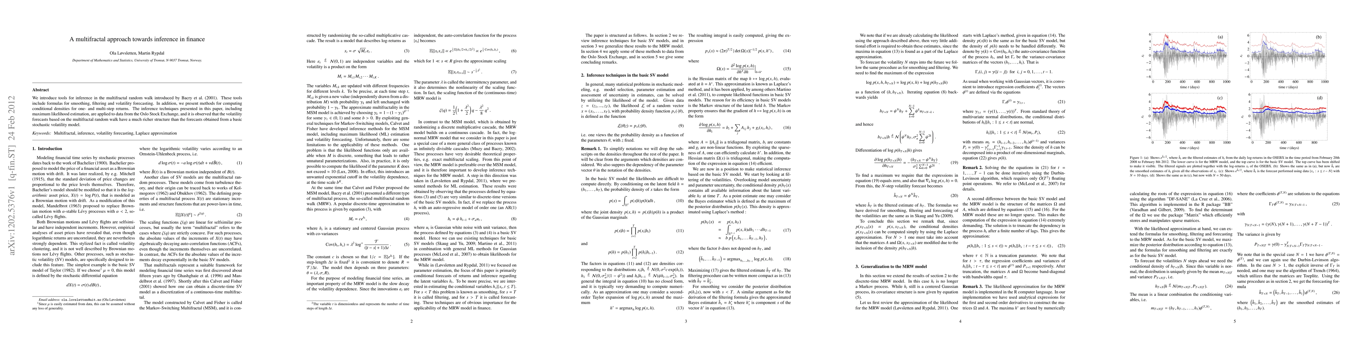 This paper develops multifractal random walk inference tools for financial data, including smoothing, filtering, and volatility forecasting methods. Applied to Oslo Stock Exchange data, these techniques reveal more complex volatility structures compared to basic stochastic volatility models.