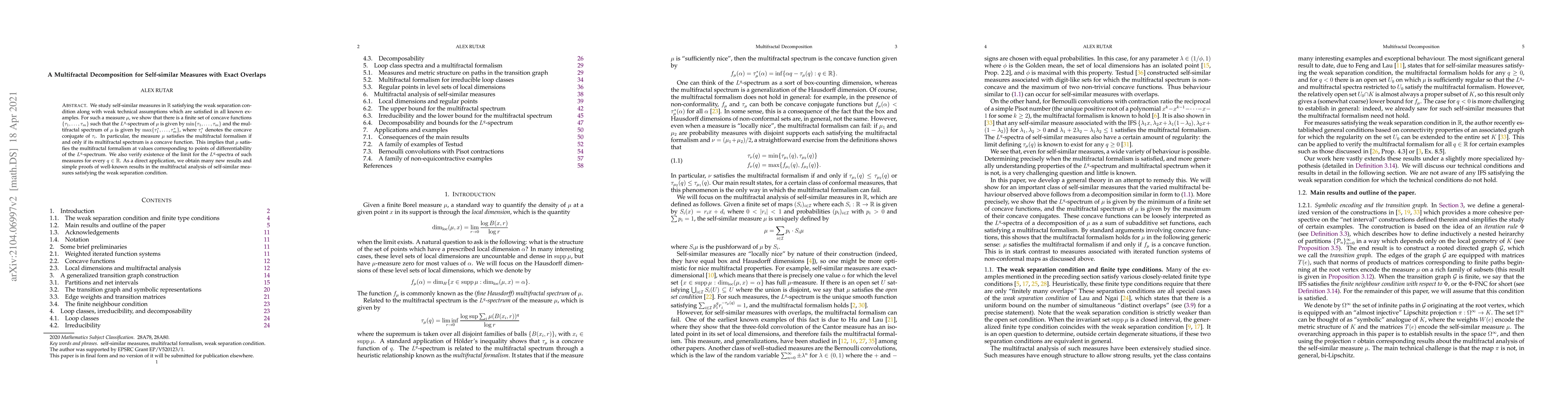 We study self-similar measures in $\mathbb{R}$ satisfying the weak separation condition along with weak technical assumptions which are satisfied in all known examples. For such a measure $\mu$, we show that there is a finite set of concave functions $\{\tau_1,\ldots,\tau_m\}$ such that the $L^q$-spectrum of $\mu$ is given by $\min\{\tau_1,\ldots,\tau_m\}$ and the multifractal spectrum of $\mu$ is given by $\max\{\tau_1^*,\ldots,\tau_m^*\}$, where $\tau_i^*$ denotes the concave conjugate of $\tau_i$. In particular, the measure $\mu$ satisfies the multifractal formalism if and only if its multifractal spectrum is a concave function. This implies that $\mu$ satisfies the multifractal formalism at values corresponding to points of differentiability of the $L^q$-spectrum. We also verify existence of the limit for the $L^q$-spectra of such measures for every $q\in\mathbb{R}$. As a direct application, we obtain many new results and simple proofs of well-known results in the multifractal analysis of self-similar measures satisfying the weak separation condition.