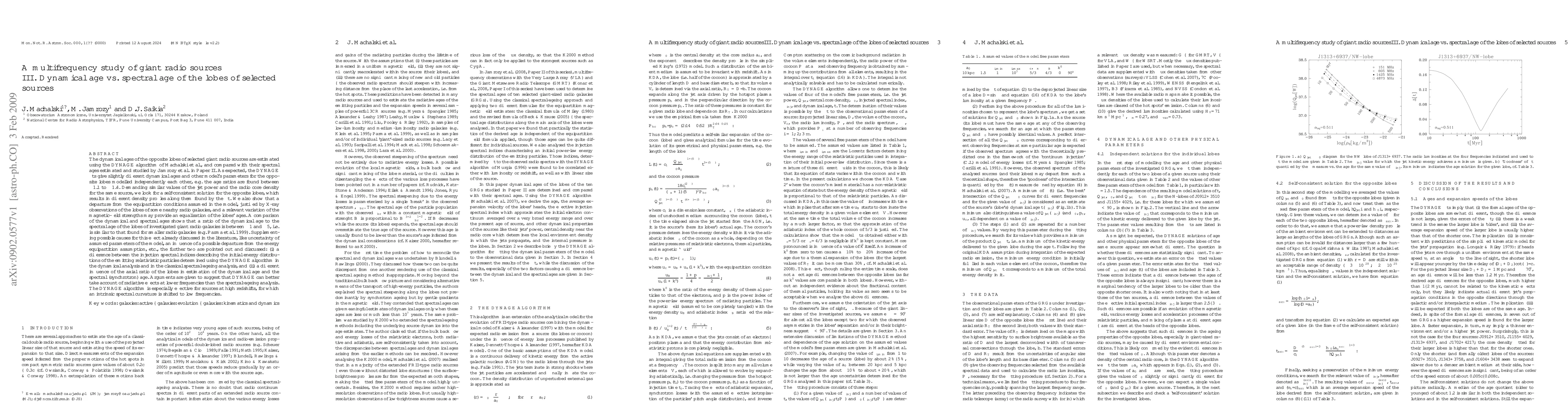 This study estimates the dynamical ages of opposite lobes in selected giant radio sources using the DYNAGE algorithm, comparing them with spectral ages derived from previous research. The results suggest that the dynamical ages differ slightly between lobes, and a departure from equipartition conditions and variations in magnetic-field strengths may equalize these ages. The ratio of dynamical to spectral ages is found to be between 1 to 5, indicating DYNAGE's effectiveness in accounting for radiative effects at lower frequencies.