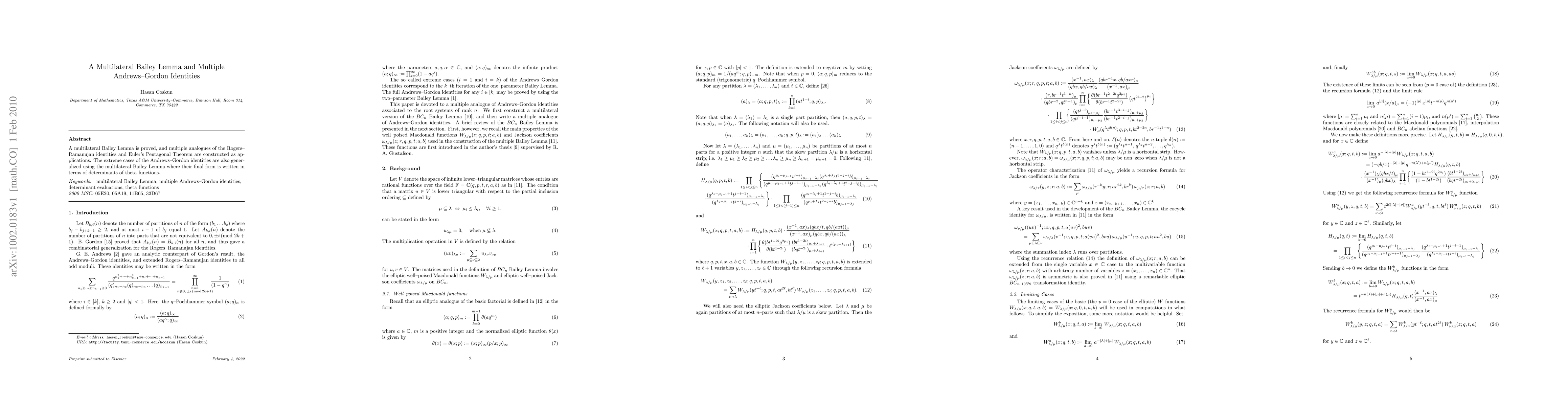 This paper proves a multilateral Bailey Lemma and uses it to construct multiple generalizations of the Rogers-Ramanujan identities and Euler's Pentagonal Theorem. It also generalizes the extreme cases of the Andrews-Gordon identities, expressing them in terms of determinants of theta functions.
