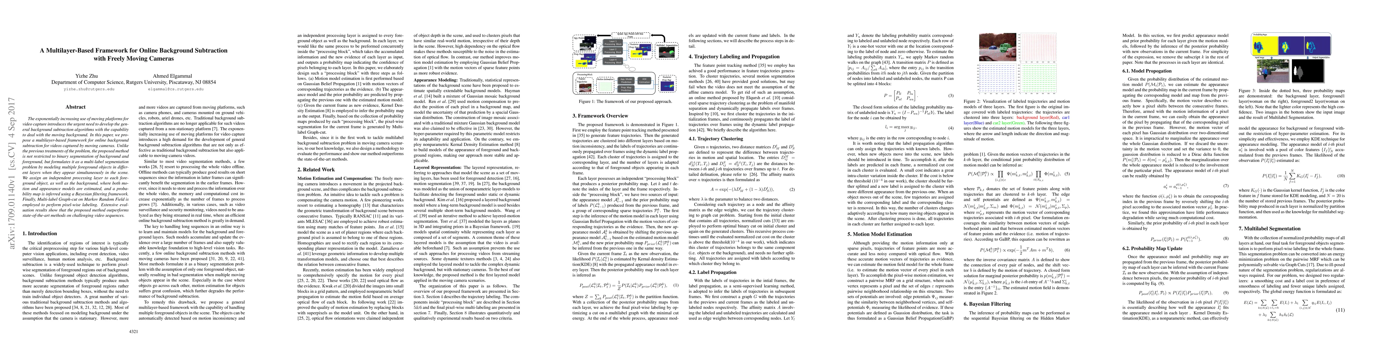 This paper proposes a multilayer-based framework for online background subtraction in videos captured by freely moving cameras, addressing the challenge of dynamic backgrounds. The method models multiple foreground objects in different layers and employs a Bayesian filtering framework and Multi-label Graph-cut on Markov Random Field for pixel-wise labeling, outperforming existing state-of-the-art techniques.
