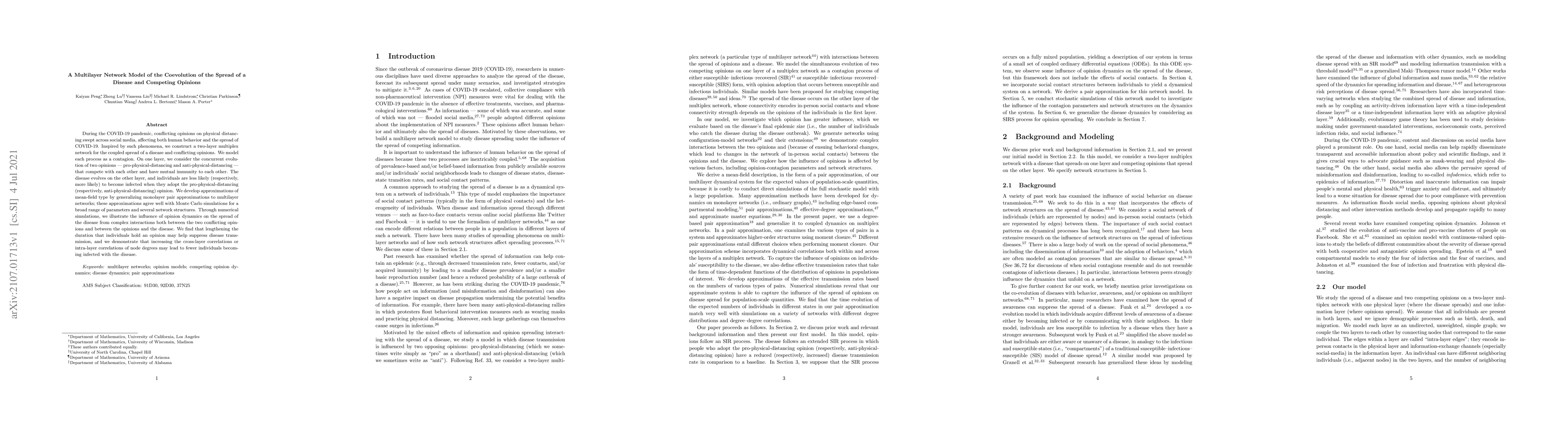 During the COVID-19 pandemic, conflicting opinions on physical distancing swept across social media, affecting both human behavior and the spread of COVID-19. Inspired by such phenomena, we construct a two-layer multiplex network for the coupled spread of a disease and conflicting opinions. We model each process as a contagion. On one layer, we consider the concurrent evolution of two opinions -- pro-physical-distancing and anti-physical-distancing -- that compete with each other and have mutual immunity to each other. The disease evolves on the other layer, and individuals are less likely (respectively, more likely) to become infected when they adopt the pro-physical-distancing (respectively, anti-physical-distancing) opinion. We develop approximations of mean-field type by generalizing monolayer pair approximations to multilayer networks; these approximations agree well with Monte Carlo simulations for a broad range of parameters and several network structures. Through numerical simulations, we illustrate the influence of opinion dynamics on the spread of the disease from complex interactions both between the two conflicting opinions and between the opinions and the disease. We find that lengthening the duration that individuals hold an opinion may help suppress disease transmission, and we demonstrate that increasing the cross-layer correlations or intra-layer correlations of node degrees may lead to fewer individuals becoming infected with the disease.