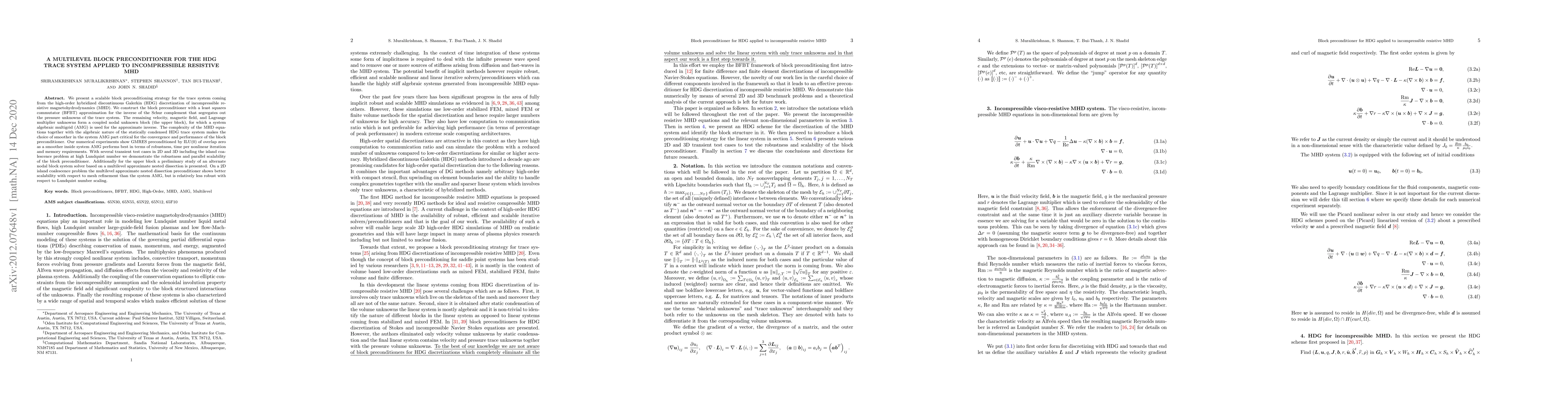 This paper introduces a scalable block preconditioner for the trace system from high-order HDG discretization of incompressible resistive MHD, employing a BFBT approximation for pressure unknowns and an AMG smoother for velocity and magnetic field unknowns. Numerical tests show that GMRES with ILU(0) preconditioning is optimal for robustness and performance, while a multilevel approximate nested dissection preconditioner offers better scalability but less robustness.