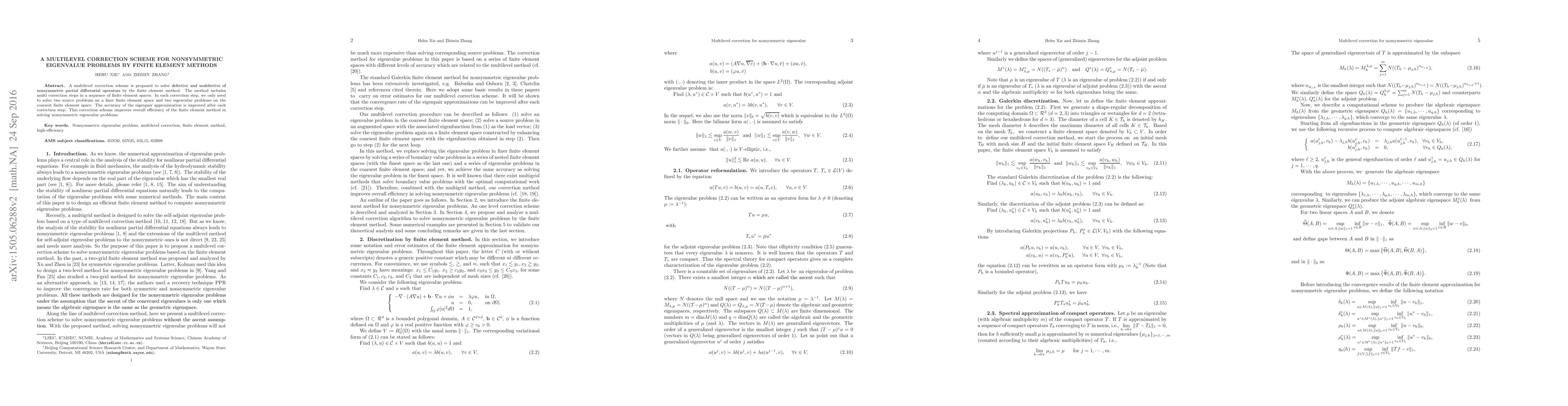 The paper proposes a multilevel correction scheme to enhance the finite element method for solving nonsymmetric eigenvalue problems, improving accuracy through iterative refinement and reducing computational cost. This method effectively converges to accurate eigenpairs by solving a few source and eigenvalue problems at each correction step.