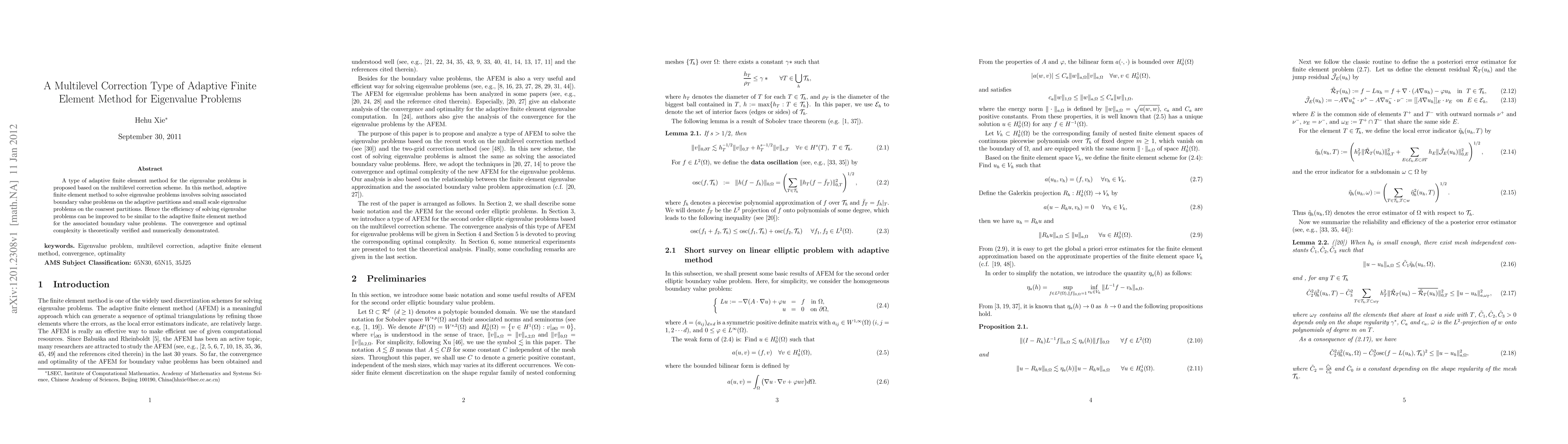 This paper proposes an adaptive finite element method for eigenvalue problems using a multilevel correction scheme, improving efficiency by solving associated boundary value problems and small scale eigenvalue problems on adaptive partitions. Theoretical and numerical results confirm its convergence and optimal complexity.