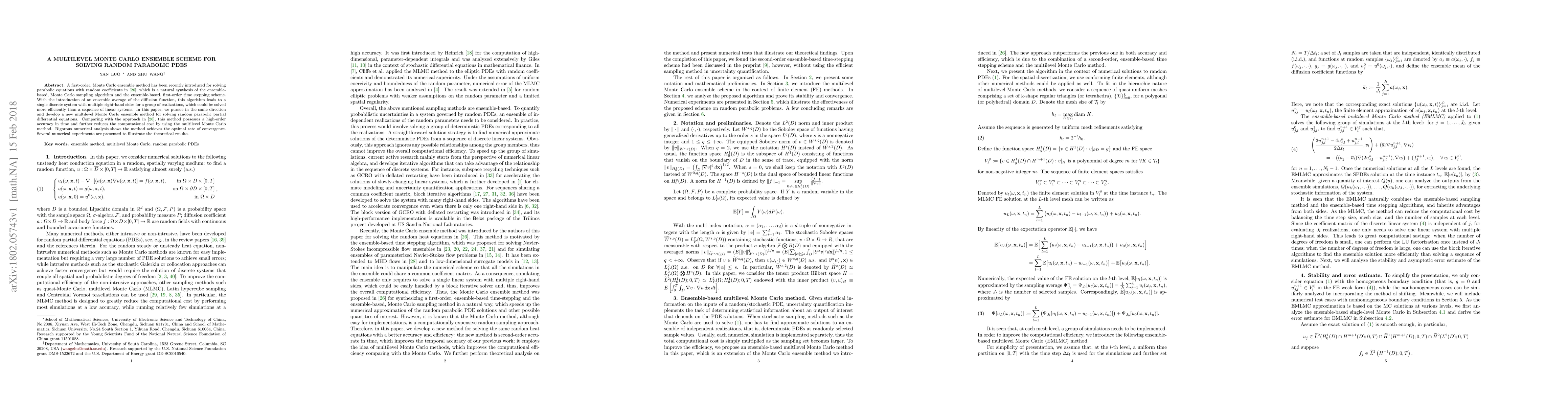 This paper introduces a new multilevel Monte Carlo ensemble method for solving random parabolic PDEs, achieving high-order accuracy in time and reducing computational costs compared to previous methods. The method demonstrates optimal convergence rates through rigorous numerical analysis and is supported by numerical experiments.