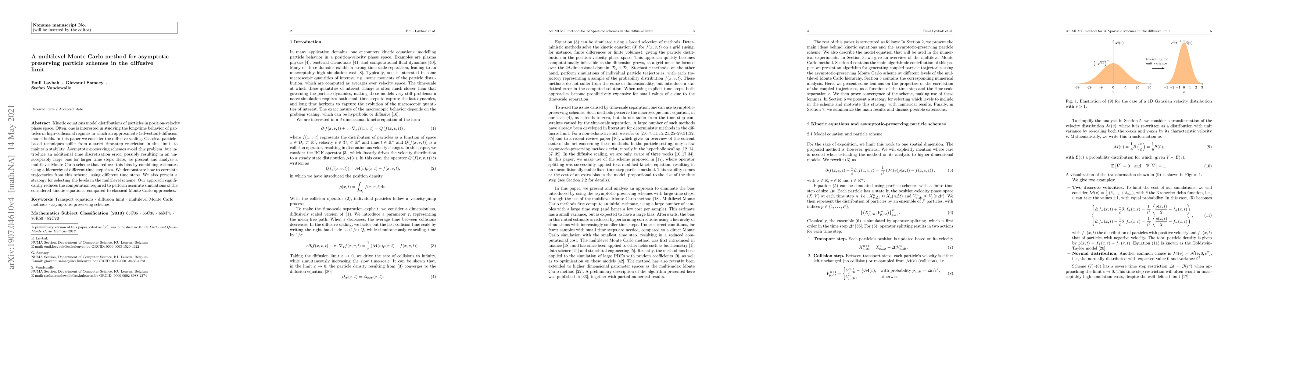 This paper introduces a multilevel Monte Carlo method to improve asymptotic-preserving particle schemes in the diffusive limit, reducing bias and computational cost compared to classical Monte Carlo approaches. The method combines estimates from different time step sizes to achieve more accurate simulations of kinetic equations in high-collisional regimes.