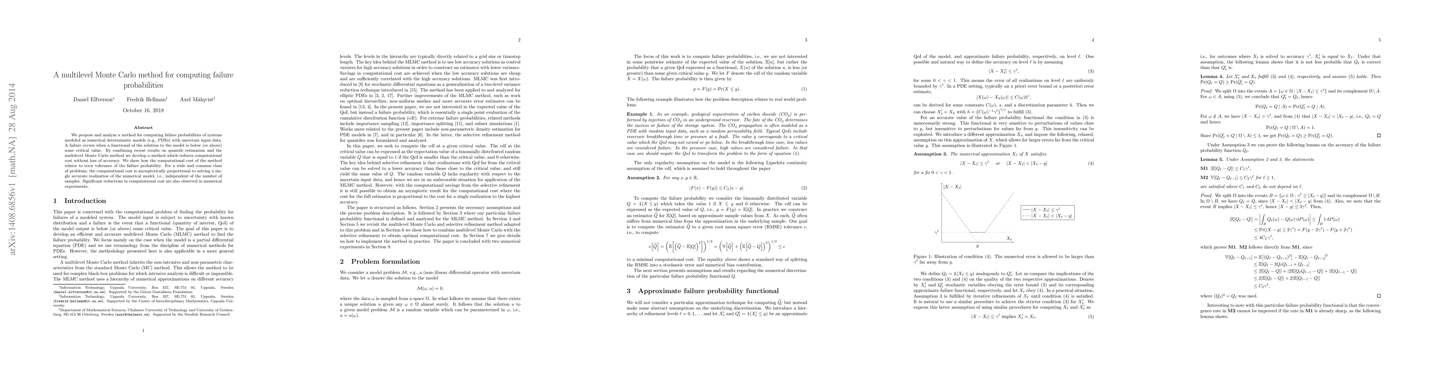 This paper introduces a multilevel Monte Carlo method to efficiently compute failure probabilities in systems modeled by deterministic numerical models with uncertain inputs. The method combines quantile estimation and multilevel Monte Carlo to reduce computational costs while maintaining accuracy, showing significant reductions in numerical experiments.