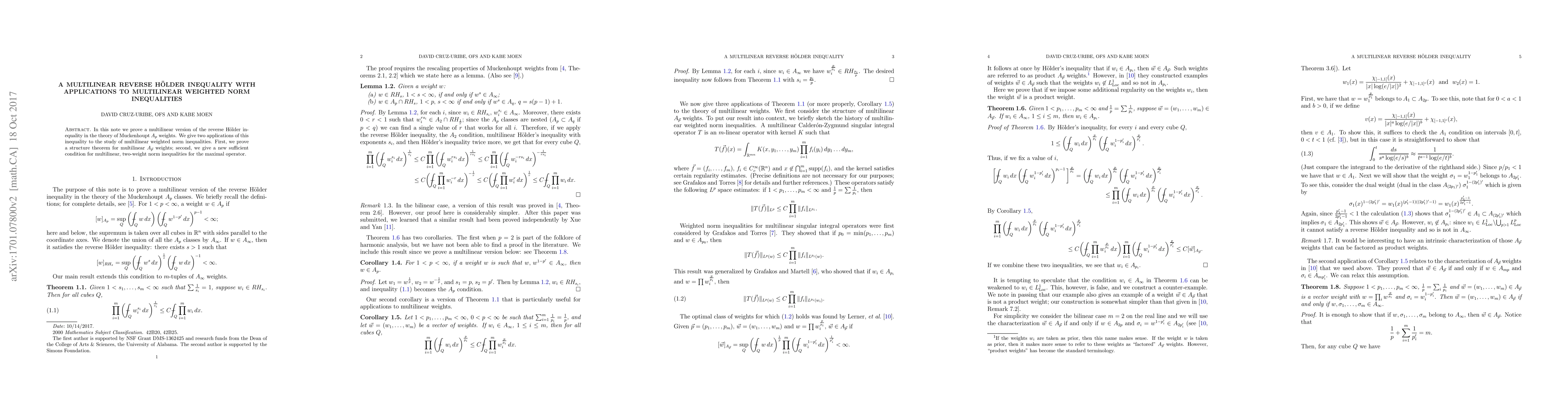 In this note we prove a multilinear version of the reverse H\"older inequality in the theory of Muckenhoupt $A_p$ weights. We give two applications of this inequality to the study of multilinear weighted norm inequalities. First, we prove a structure theorem for multilinear $A_{\vec{p}}$ weights; second, we give a new sufficient condition for multilinear, two-weight norm inequalities for the maximal operator.
