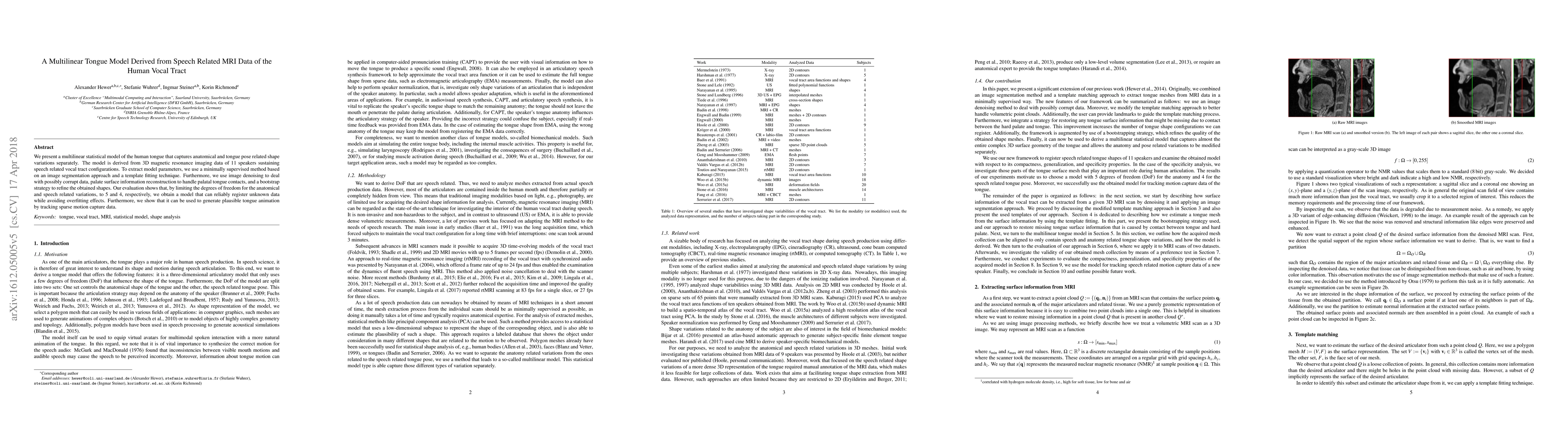 The paper introduces a minimally supervised method for deriving a multilinear tongue model from MRI data, separating anatomical and speech-related shape variations.