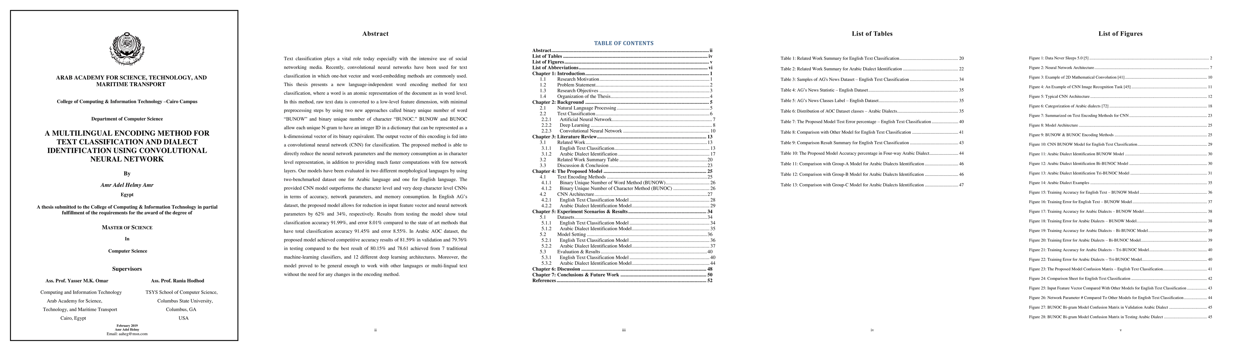 This research introduces a hybrid multilingual text classification model using BUNOW and BUNOC encoding methods fed into a novel CNN architecture for efficient processing. Compared to traditional methods, the proposed model achieves superior performance with less memory and fewer computational layers.