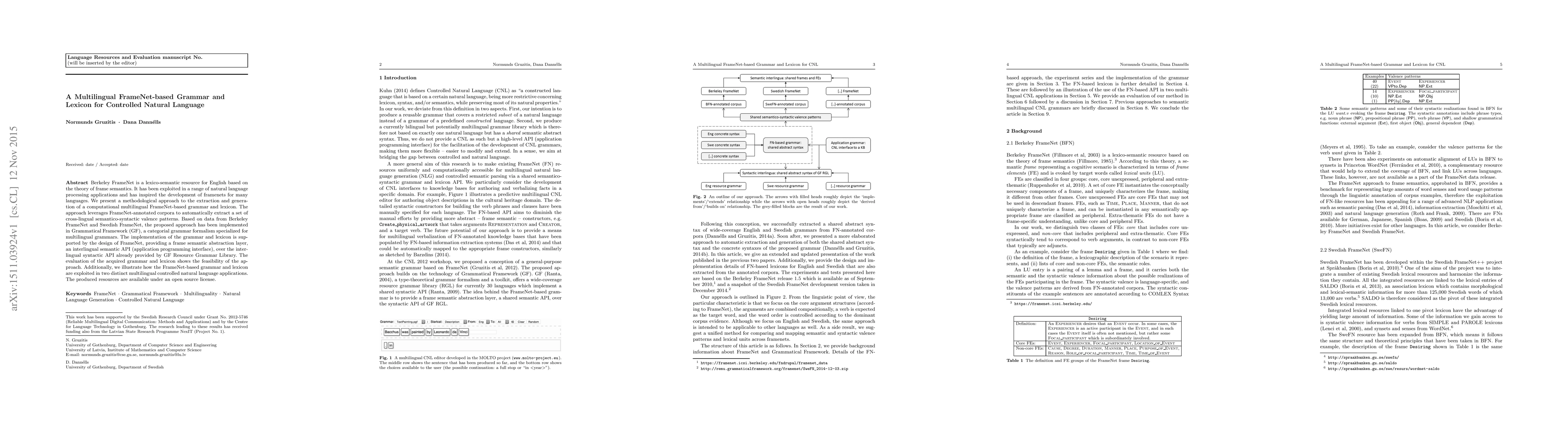 This work builds upon existing research in FrameNet and CNL by providing a systematic approach to extracting multilingual grammars and lexicons, making it a novel contribution to the field.