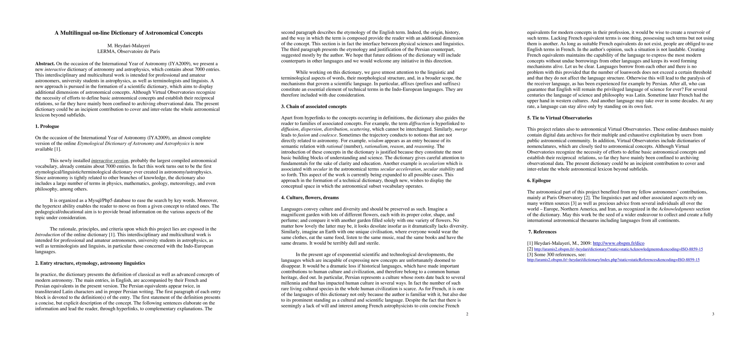 On the occasion of the International Year of Astronomy (IYA2009), we present a new interactive dictionary of astronomy and astrophysics, which contains about 7000 entries. This interdisciplinary and multicultural work is intended for professional and amateur astronomers, university students in astrophysics, as well as terminologists and linguists. A new approach is pursued in the formation of a scientific dictionary, which aims to display additional dimensions of astronomical concepts. Although Virtual Observatories recognize the necessity of efforts to define basic astronomical concepts and establish their reciprocal relations, so far they have mainly been confined to archiving observational data. The present dictionary could be an incipient contribution to cover and inter-relate the whole astronomical lexicon beyond subfields.