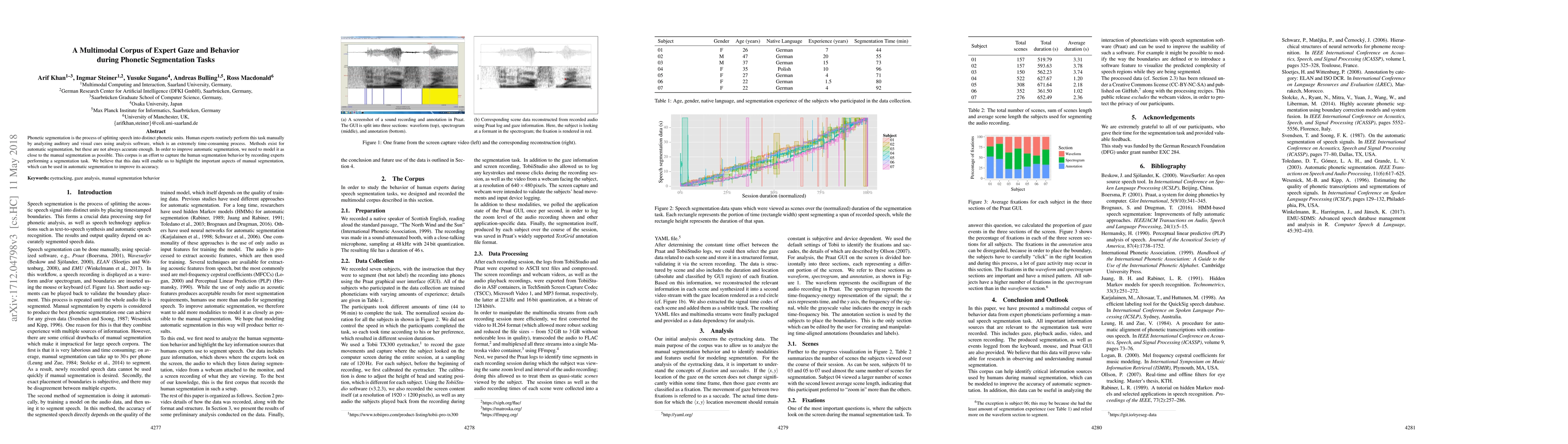 Phonetic segmentation is the process of splitting speech into distinct phonetic units. Human experts routinely perform this task manually by analyzing auditory and visual cues using analysis software, which is an extremely time-consuming process. Methods exist for automatic segmentation, but these are not always accurate enough. In order to improve automatic segmentation, we need to model it as close to the manual segmentation as possible. This corpus is an effort to capture the human segmentation behavior by recording experts performing a segmentation task. We believe that this data will enable us to highlight the important aspects of manual segmentation, which can be used in automatic segmentation to improve its accuracy.