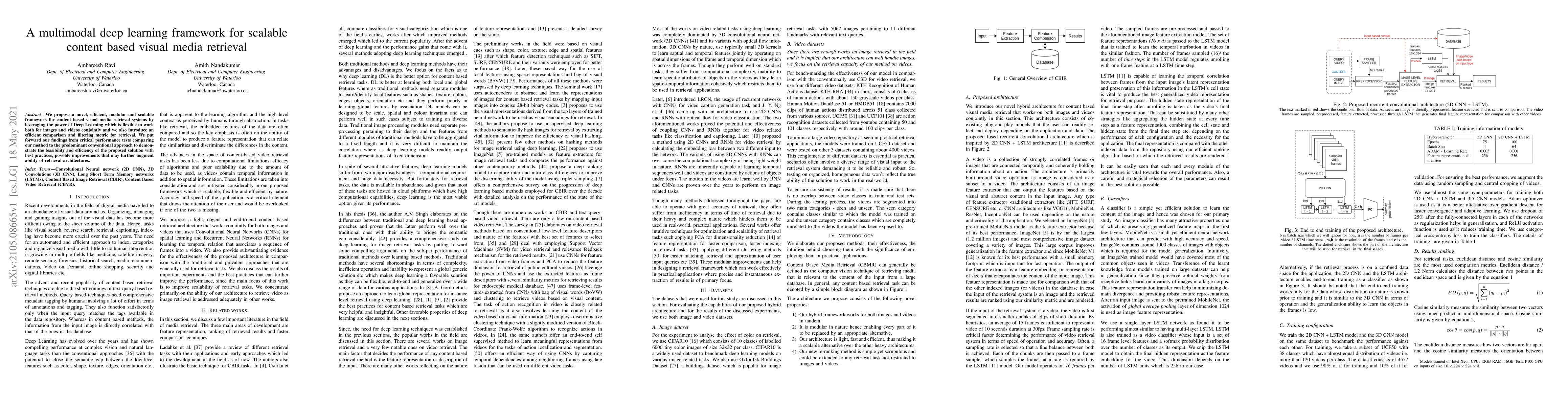 We propose a novel, efficient, modular and scalable framework for content based visual media retrieval systems by leveraging the power of Deep Learning which is flexible to work both for images and videos conjointly and we also introduce an efficient comparison and filtering metric for retrieval. We put forward our findings from critical performance tests comparing our method to the predominant conventional approach to demonstrate the feasibility and efficiency of the proposed solution with best practices, possible improvements that may further augment the ability of retrieval architectures.