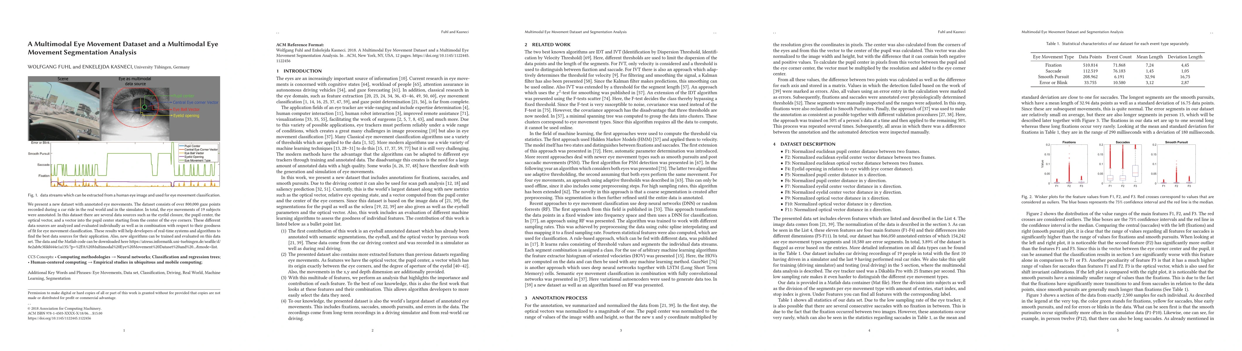 This paper introduces a new multimodal eye movement dataset with over 800,000 gaze points from 19 subjects, analyzed for various data sources to aid in real-time system development and algorithm training. The dataset and evaluation code are available for download.
