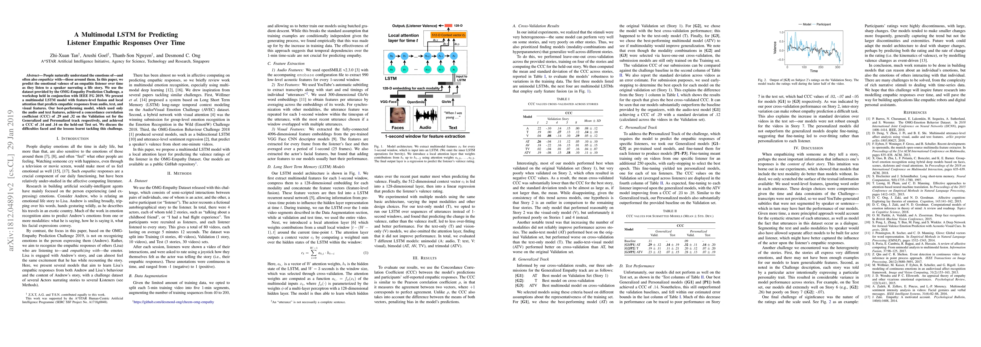 This paper proposes a multimodal LSTM model to predict empathic responses of listeners over time while they listen to life story narrations. The model, utilizing audio, text, and visual features, achieved notable concordance correlation coefficients on validation and test sets, highlighting both its effectiveness and the challenges encountered.
