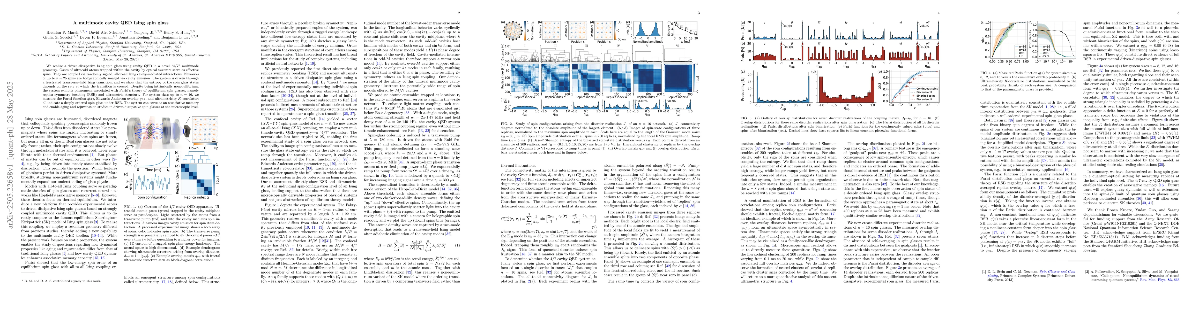 The novel '4/7' multimode cavity QED geometry and its application to realizing a driven-dissipative Ising spin glass, enabling the study of equilibrium spin glass phenomena in a nonequilibrium setting.