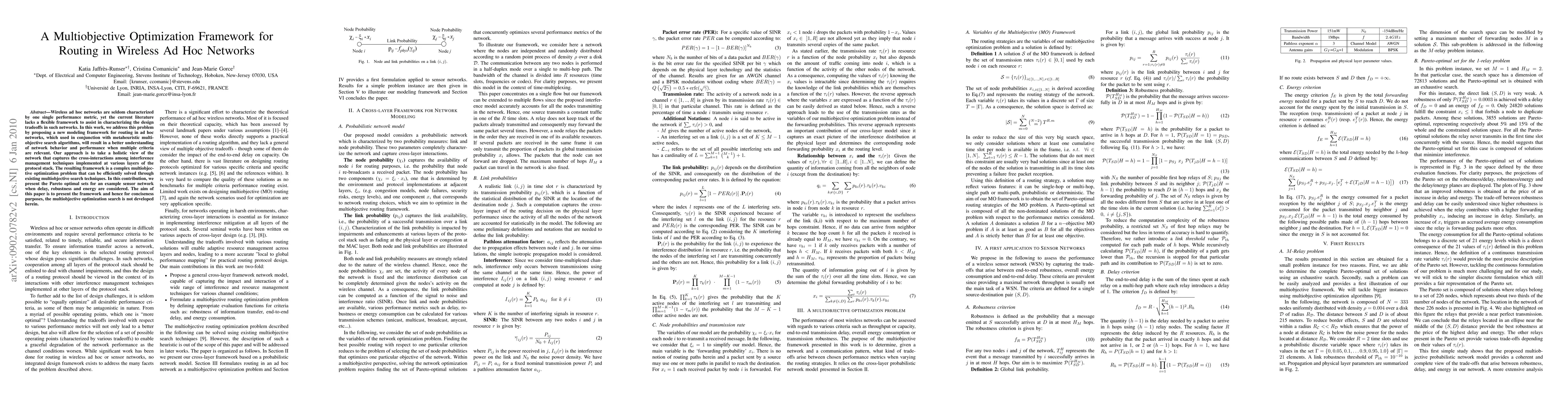 The paper introduces a novel multiobjective optimization framework for routing in wireless ad hoc networks, incorporating a probabilistic network model that captures cross-layer interactions and interference management techniques.