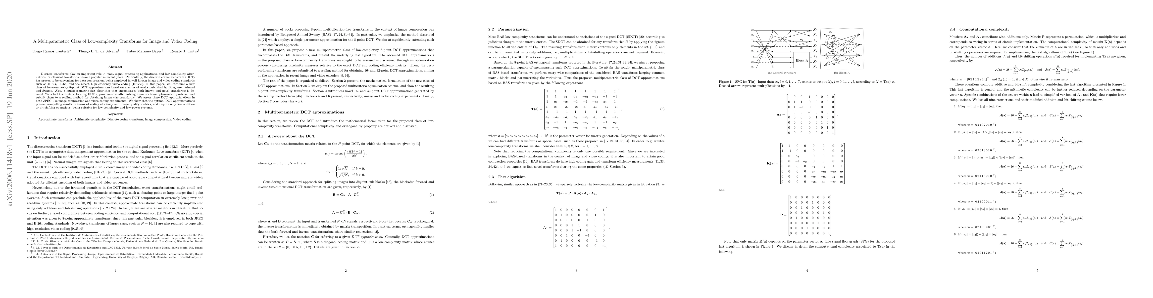This paper proposes a new class of low-complexity 8-point DCT approximations based on existing methodologies, along with a multiparametric fast algorithm. The optimal DCT approximations were selected through multicriteria optimization and demonstrated strong performance in both image and video coding applications, requiring minimal computational operations.