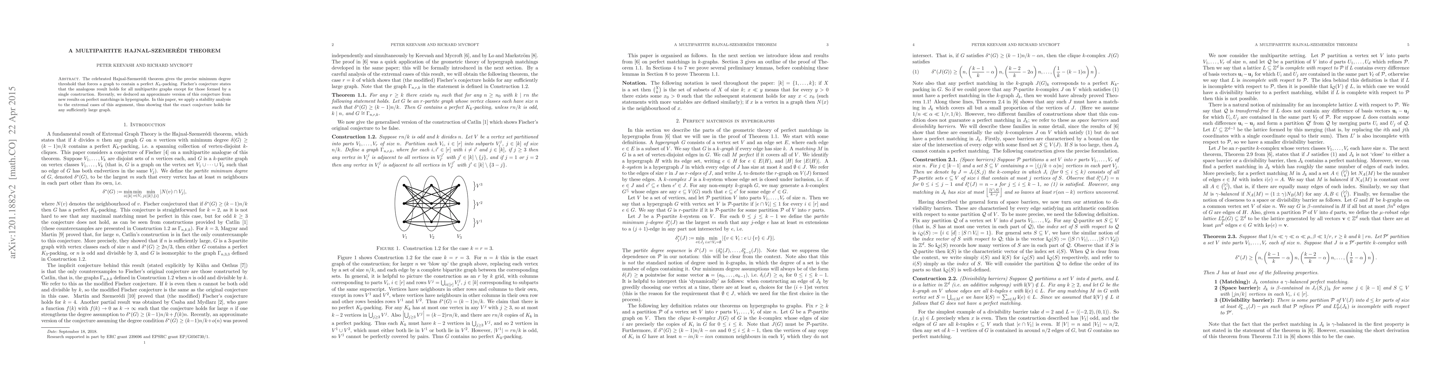 The celebrated Hajnal-Szemer\'edi theorem gives the precise minimum degree threshold that forces a graph to contain a perfect K_k-packing. Fischer's conjecture states that the analogous result holds for all multipartite graphs except for those formed by a single construction. Recently, we deduced an approximate version of this conjecture from new results on perfect matchings in hypergraphs. In this paper, we apply a stability analysis to the extremal cases of this argument, thus showing that the exact conjecture holds for any sufficiently large graph.